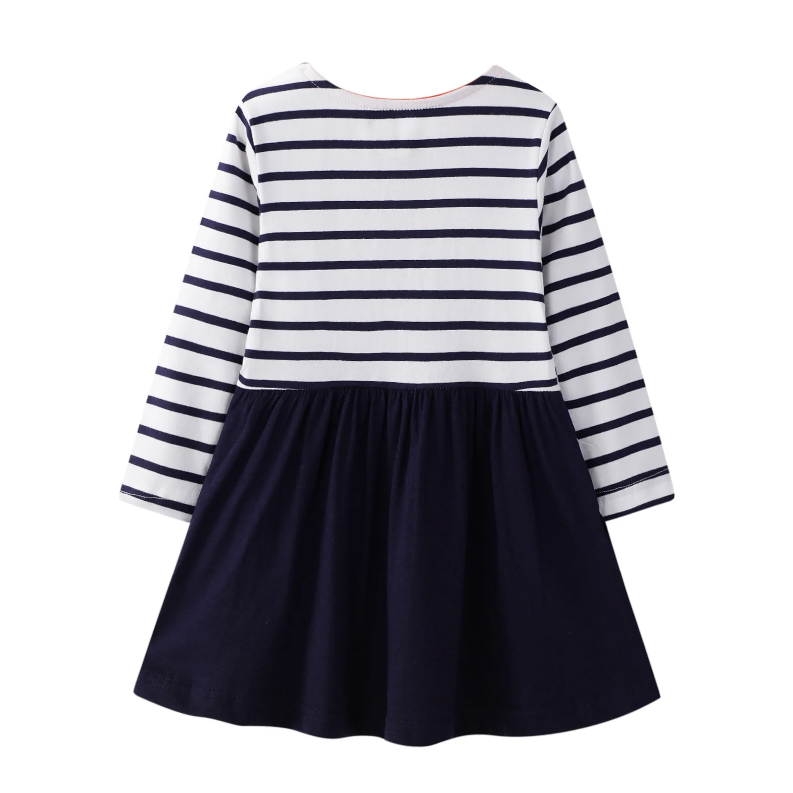 Одежда для маленьких девочек, платья в полоску, детская одежда на осень и зиму, модная детская повседневная одежда, нарядное платье для девочек