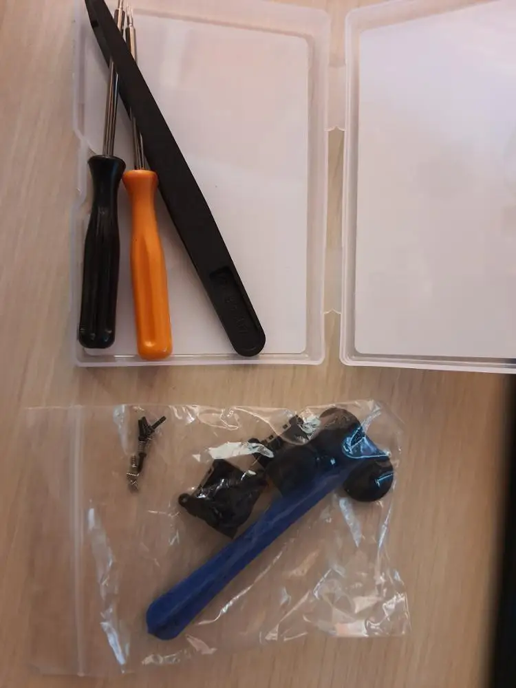 Пришло быстро, в комплекции до последнего винтика в удобной пластиковой коробочке. Продавец даже положил наклейки с буквами, мелочь, но приятно. Отвёртки подходят для джойконов, даже для про контроллера. Рекомендую