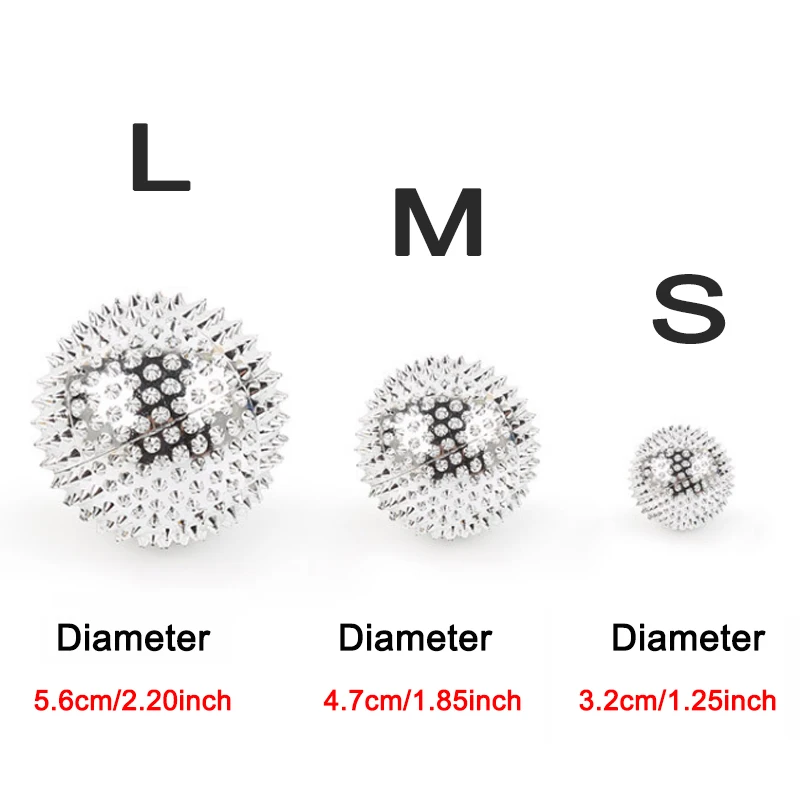 1. Применение: ручная 2. Материал: АБС + магнитная руда 3. Цвет: золотой, серебряный 4. Размер: S:32 мм (D) ; M:47 мм (D) ;L:56 мм (D) (Пожалуйста, выберите размер) 5. Вес нетто: S:36 г; M:97 г; L:132 г