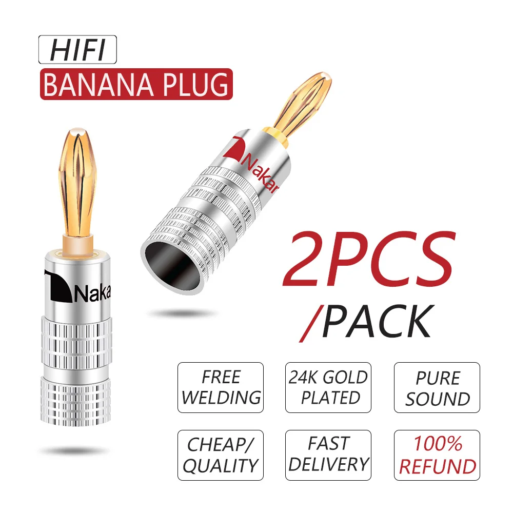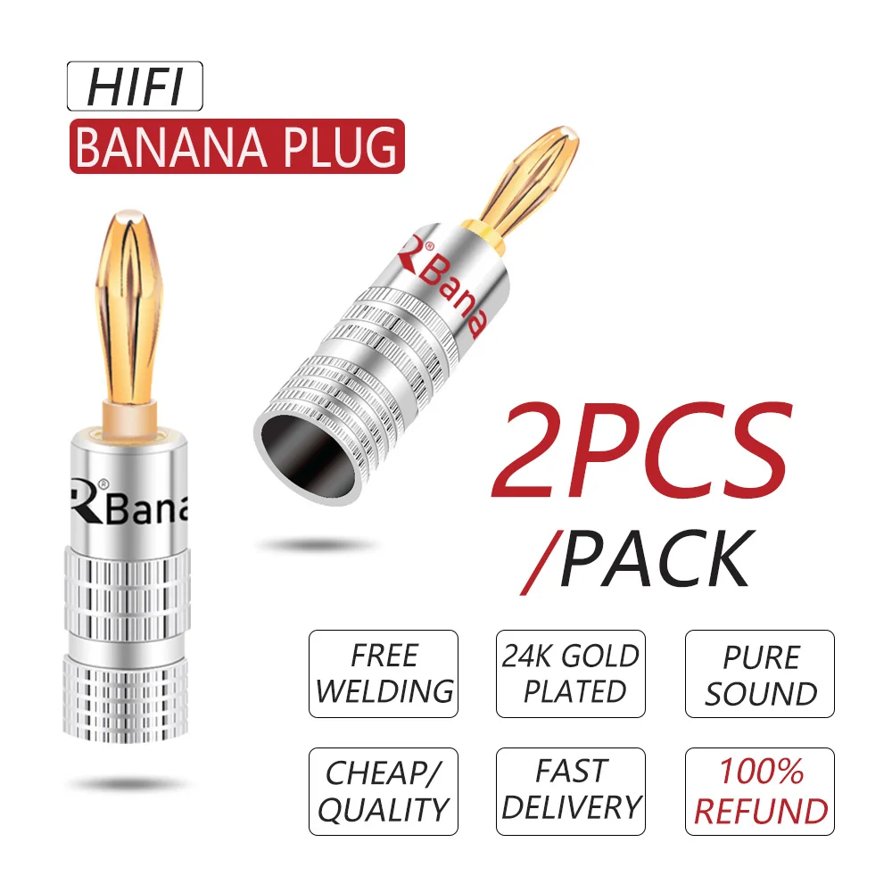 Штекер банановый 24K позолоченный латунный 4 мм штекер для динамика черный и красный