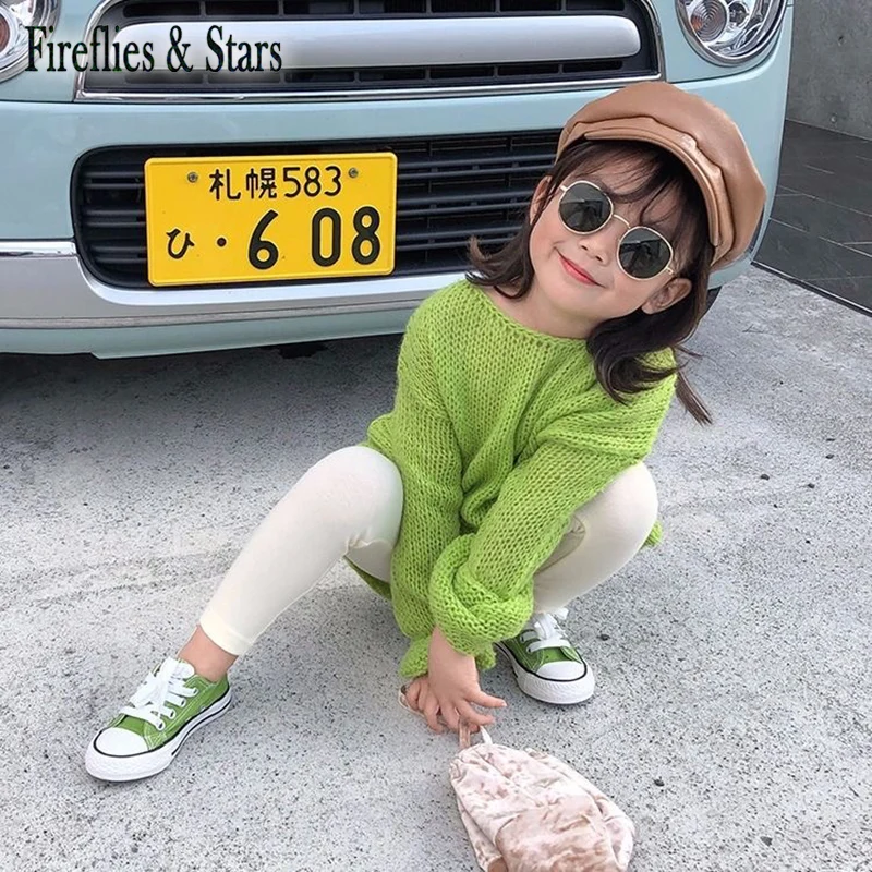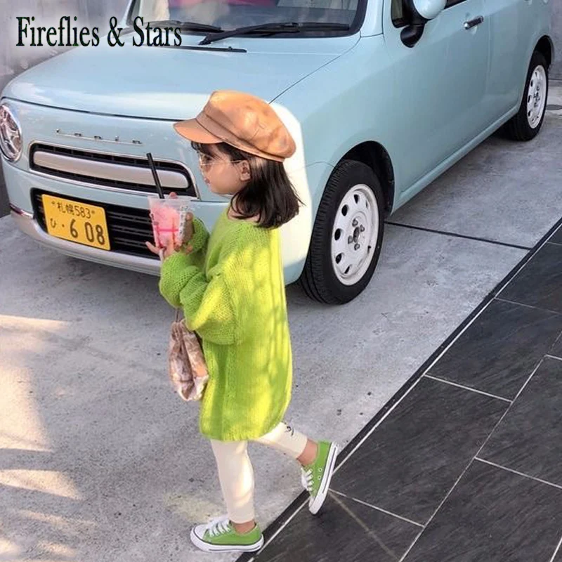 Свитер для девочек на весну и осень, детская трикотажная одежда, длинный свитер, Детская вязаная одежда, модный бойфренд оверсайз с травой от 2 до 9 лет
