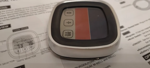 Все хорошо, удобно, точно, стильно. До этого был кнопочный термометр, щуп от него не подходит, показывает градусов на 10 больше, хотя штекер идентичный. Думала будет щуп прозапас, но увы, придется дозаказывать. Но по удобству кнопочные не уступают, плюс не нужно выключать, т.к. жк-экран почти не расходует батарейку, а этот забыла выключить, через 3 дня батарейка под замену.