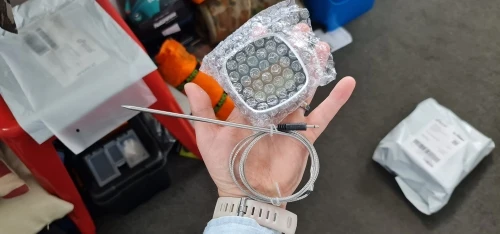 Классный датчик. магнитами крепится к дверце духовки. Думала, что рассчитан на 2 термощупа, но нет - второй просто запасной, т.к. на самом датчике вход только один.