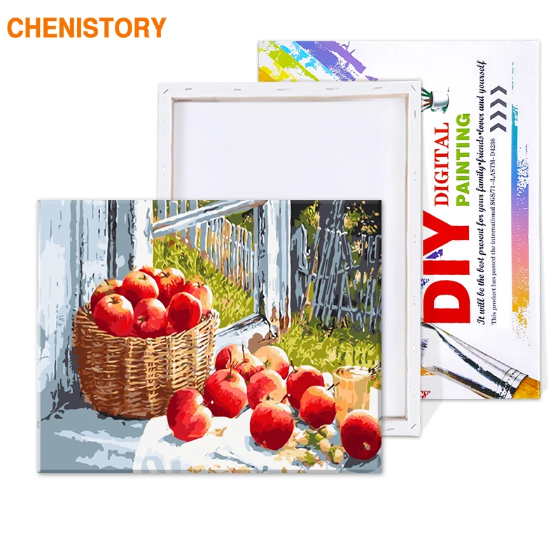 Картина по номерам CHENISTORY, бескаркасная яблочный фруктовый, сделай сам, Настенная картина для домашнего декора, ручная роспись маслом, 40 х50 см