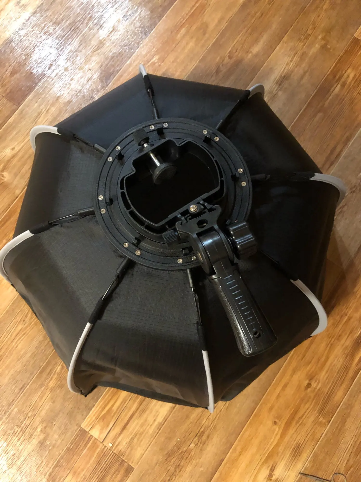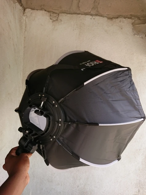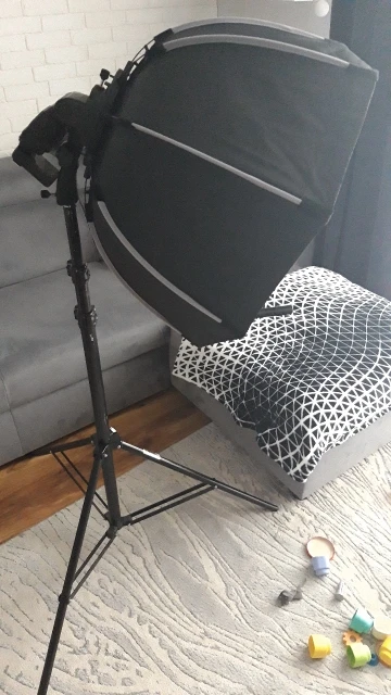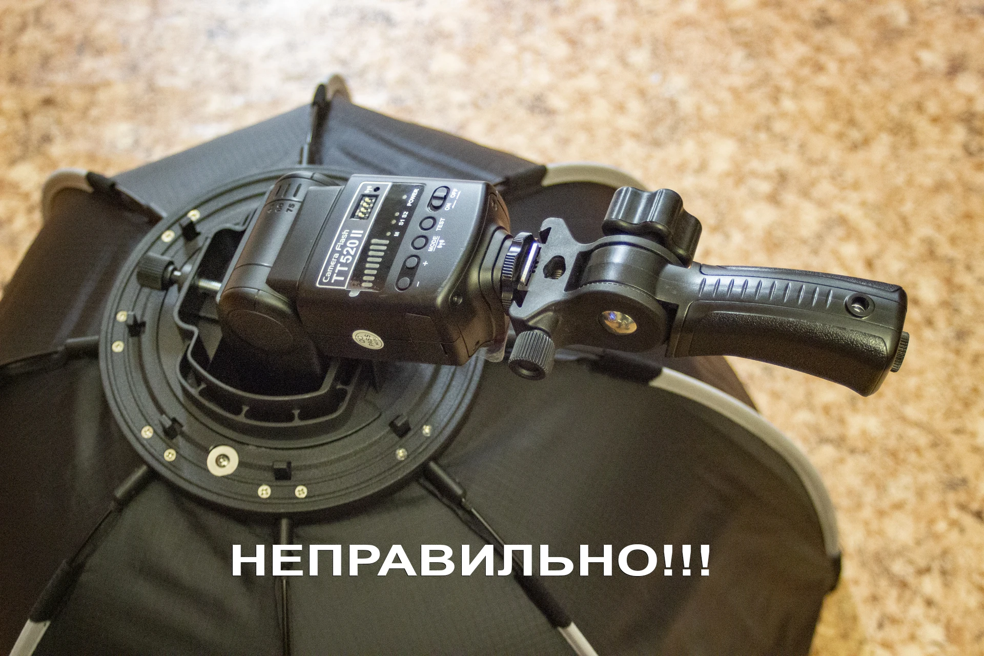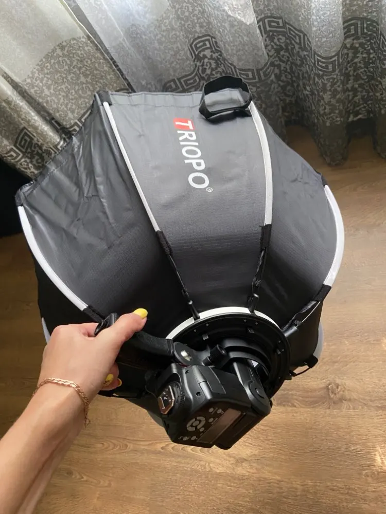 Отличный софтбокс! Присутствуют торчащие нитки, обрезал их все, стало отлично, смотрится аккуратно. Первый раз собрал неправильно, не так установил вспышку - в итоге вся конструкция пизданулась со стойки, т.к. вспышка выехала из пазов. Собирайте правильно, не повторите мою ошибку! Также там есть винт под крестовую отвертку, ослабляете его и можно вращать софтбокс относительно вспышки. Еще бесячая мелочь - фиксирующая лямка пришита так, что прямо на надпись свисает, бесит. В промо-ролике эта лямка пришита по-другому. В остальном - шикарная вещь. Также там есть маленький фиксатор, чтоб софтбокс не выехал из рукоятки, обратите внимание. Свет мягкий, рассеянный - но по качеству света все же не такой, как зонт на отражение - несколько жестче. Вы должны это понимать, если снимаете и понимаете в свете, в чем разница рассеянного и отраженного света. Там есть дырка под зонтик, советую сразу заказывать белый зонт в дополнение к этому софтбоксу