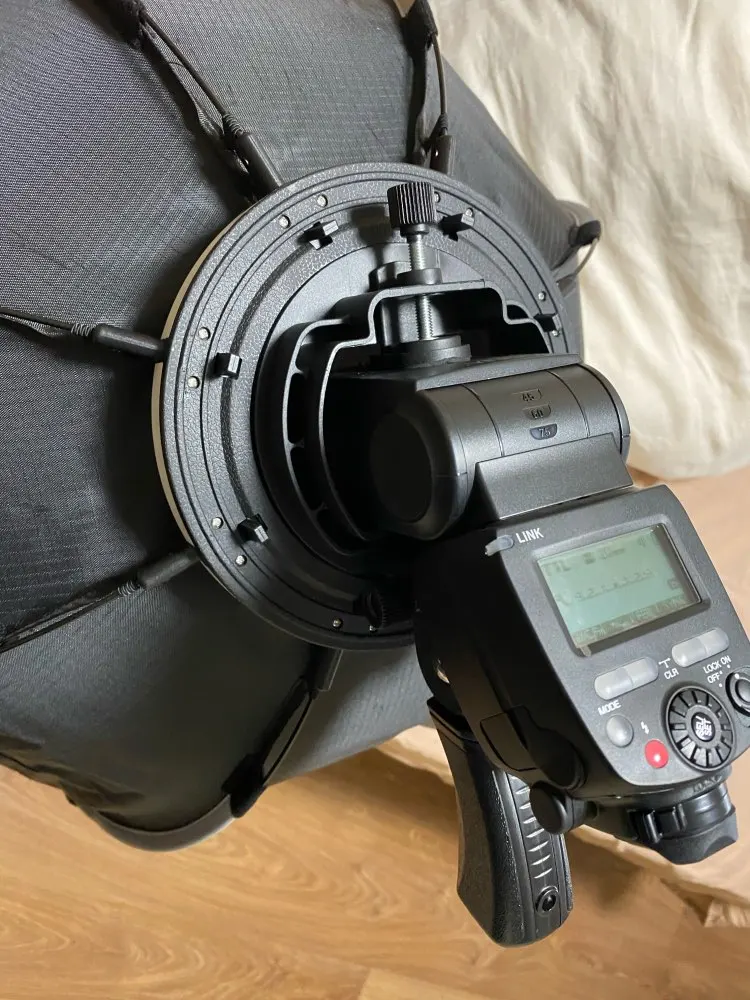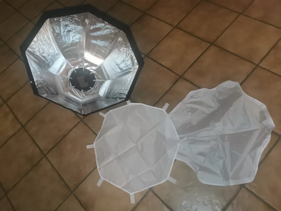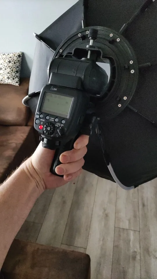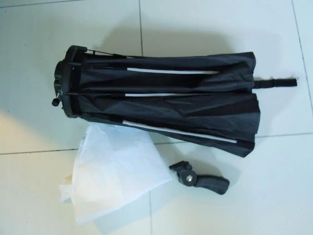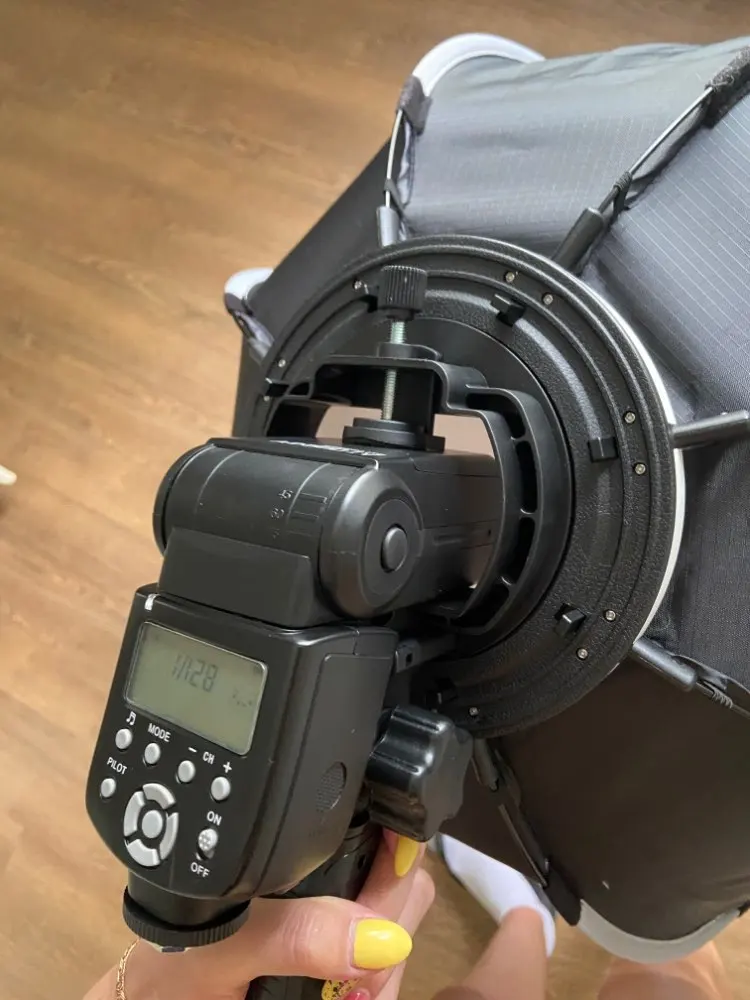 Отличный софтбокс! Присутствуют торчащие нитки, обрезал их все, стало отлично, смотрится аккуратно. Первый раз собрал неправильно, не так установил вспышку - в итоге вся конструкция пизданулась со стойки, т.к. вспышка выехала из пазов. Собирайте правильно, не повторите мою ошибку! Также там есть винт под крестовую отвертку, ослабляете его и можно вращать софтбокс относительно вспышки. Еще бесячая мелочь - фиксирующая лямка пришита так, что прямо на надпись свисает, бесит. В промо-ролике эта лямка пришита по-другому. В остальном - шикарная вещь. Также там есть маленький фиксатор, чтоб софтбокс не выехал из рукоятки, обратите внимание. Свет мягкий, рассеянный - но по качеству света все же не такой, как зонт на отражение - несколько жестче. Вы должны это понимать, если снимаете и понимаете в свете, в чем разница рассеянного и отраженного света. Там есть дырка под зонтик, советую сразу заказывать белый зонт в дополнение к этому софтбоксу