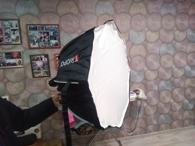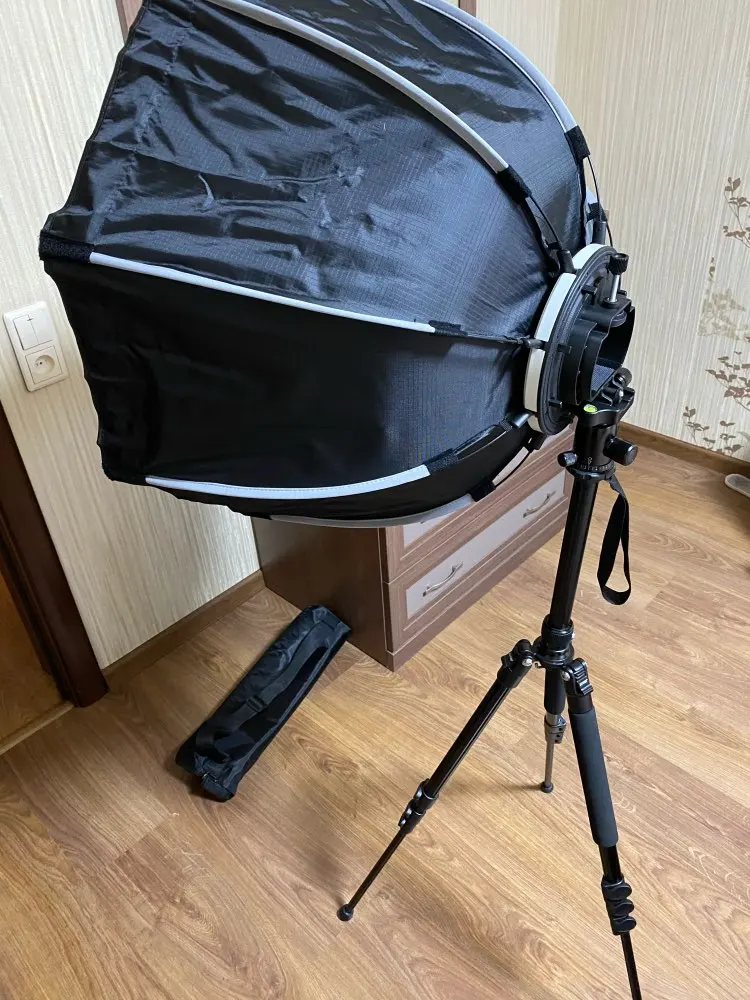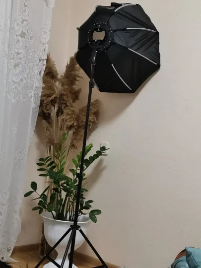 Отличный софтбокс . Соответствует описанию . Легкий , в сложенном виде компактный , можно установить на стойку , есть удобная ручка в комплекте. раскладывается туго, об этом уже писали в отзывах, но я довольно быстро его разложила. В действии ещё не опробовала , но думаю он отлично себя проявит .