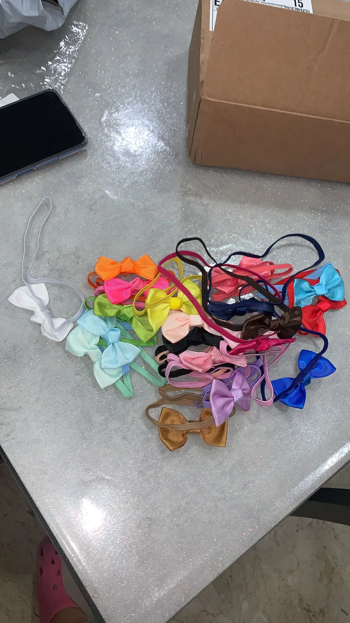 Lacitos bonitos pero no los puedo usar porque es demasiado estrecha la goma. Aprieta la cabeza del bebé dejando marca. Debería poderse regular el tamaño.