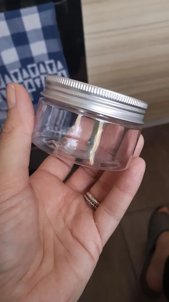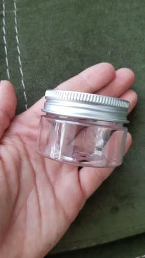 Набор из 3 пластиковых коробок с винтовой крышкой! Я заказал 100 мл банок, и они выглядят как они! Удобно для хранения печенья, может также содержать специи или даже использоваться в качестве горшка для краски. Доставка в течение 3 недель, чтобы прибыть в Бельгия