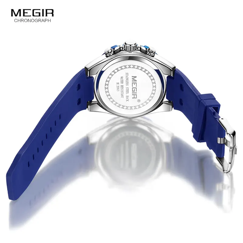 MEGIR армейские спортивные водонепроницаемые кварцевые наручные часы для мужчин, синие силиконовые часы с секундомером, светящиеся часы 2083GBE-2