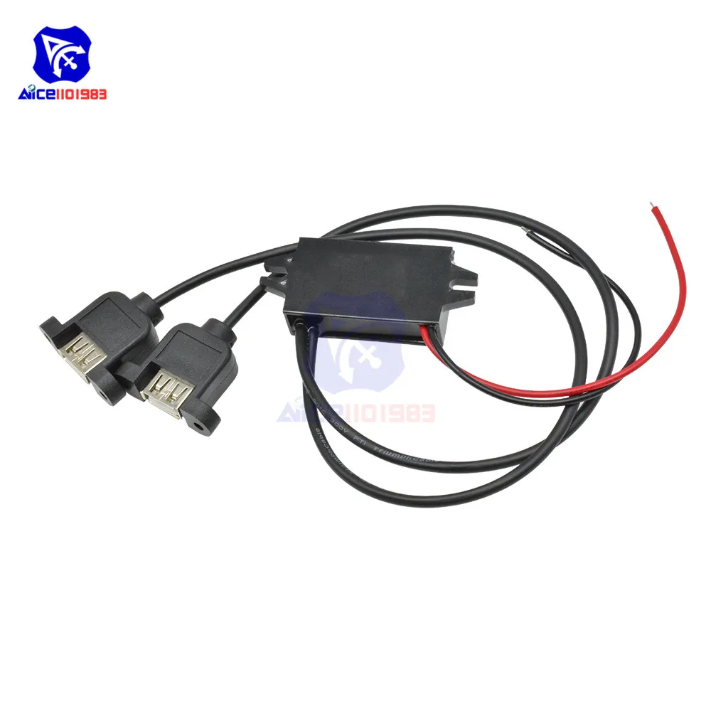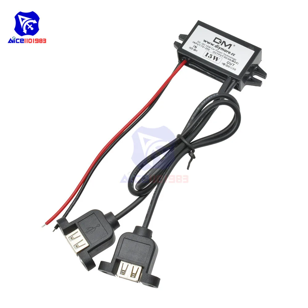 Понижающий модуль преобразователя diymore DC-DC 12 В в 5 в 3 А 15 Вт, водонепроницаемый адаптер с двумя USB-портами для автомобиля