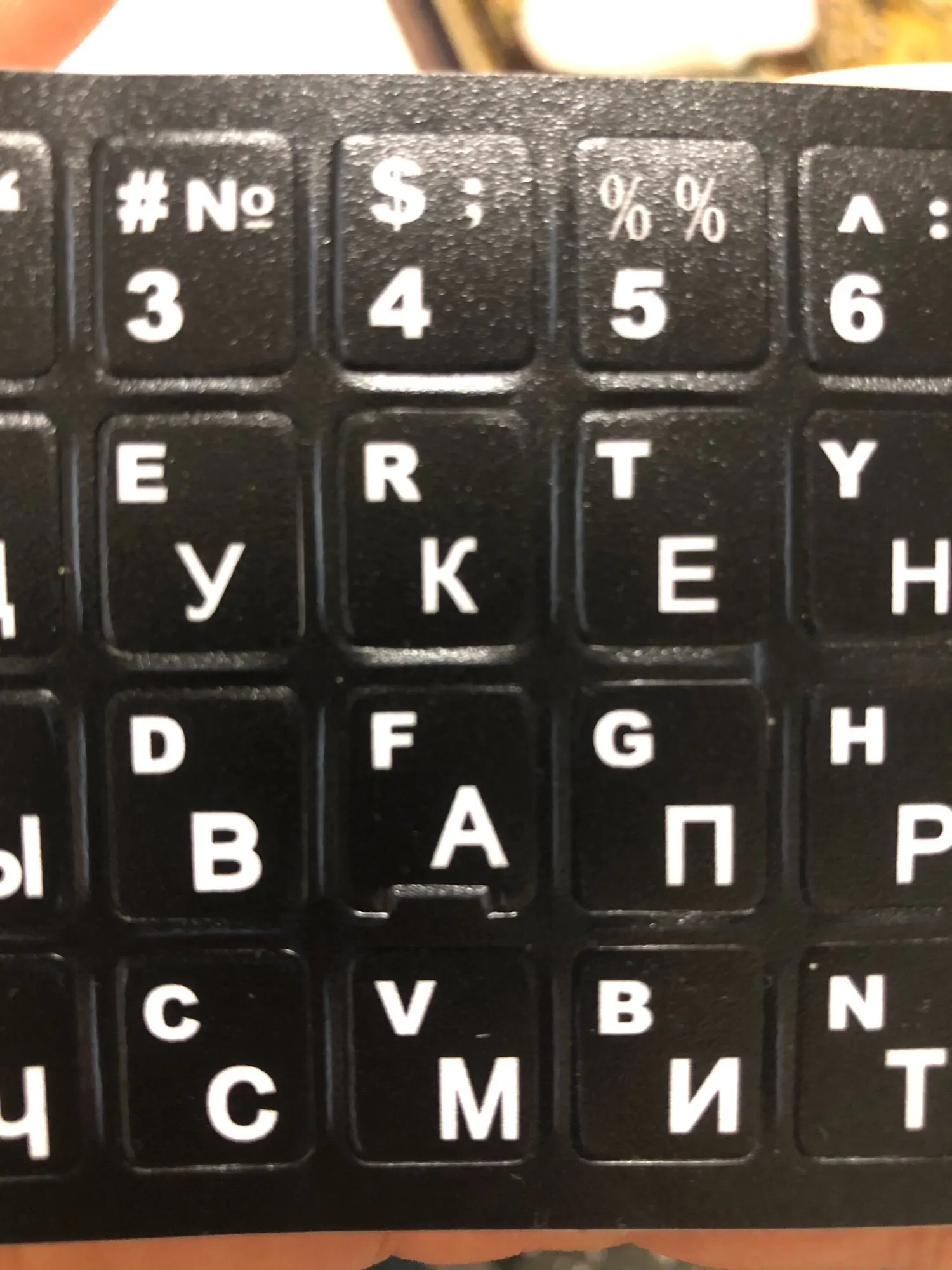 Хорошие наклейки. плотные, хорошо фиксируются на клавиатуре, буквы четкие