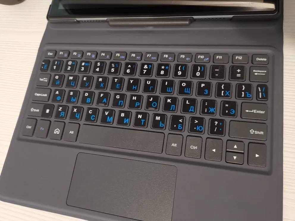 Клавиатура хорошая, выглядит стильно, собрана хорошо, печатать без русских символов тоже просто, быстро привыкаешь, качество соединения хорошее. Из минусов мог бы выделить то, что комплект неполный, отсутствуют батарейки, наличие которых указано на упаковке. За свои деньги лучшая!