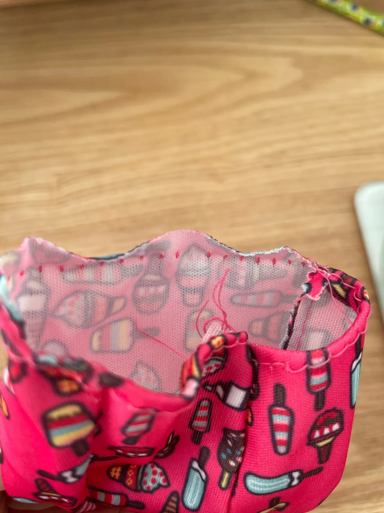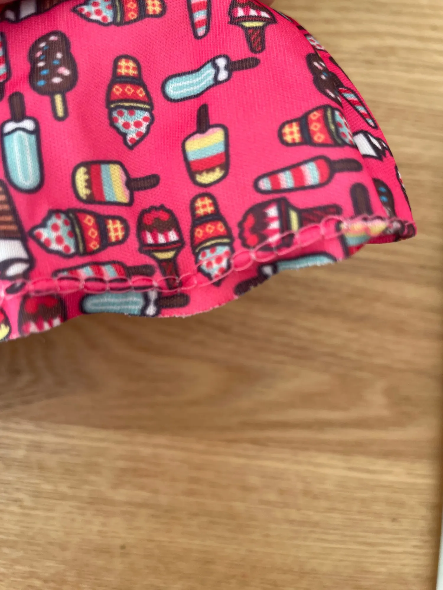 Немного большой. Один кусок. Хорошая ткань. Свободные нити, но в целом хорошо сшиты и с небольшим запахом.