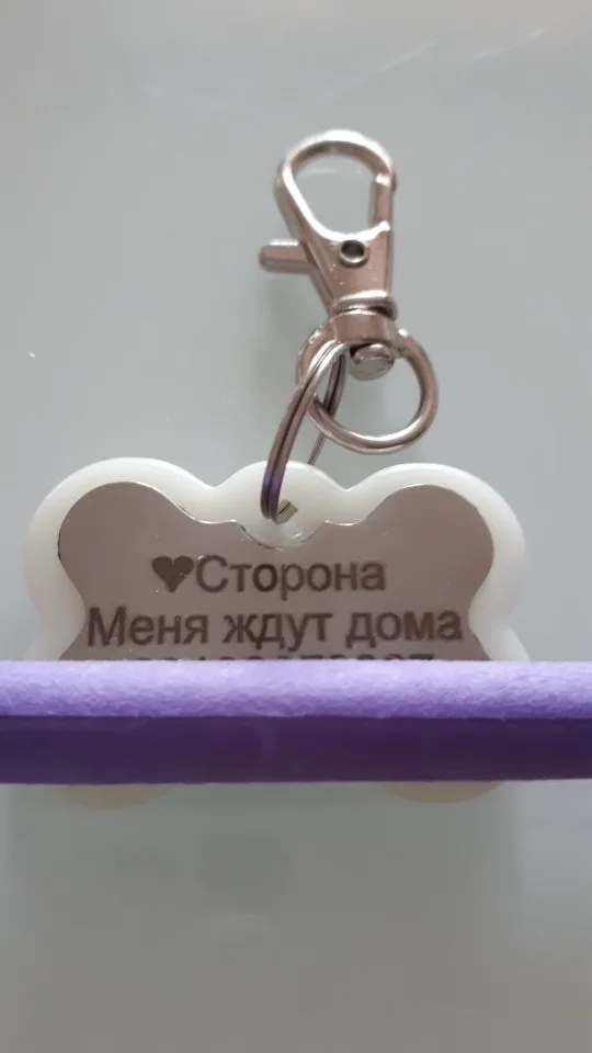Адресник не понравился. Размер маленький, качество так себе. Металлическая часть приклеена к пластиковой -клей выступает, отверстие для кольца поломано. А надпись это вообще что то с чем то♀️. скопировала из описания, написала в сообщении. СТОРОНА тоже выгравировали....