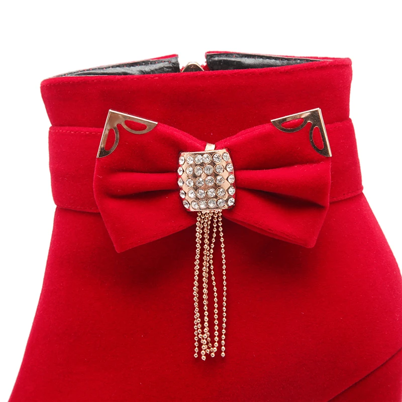 Женские ботильоны на платформе, черные или Синие ботильоны на высоком каблуке, с бантом, большие размеры 32-43, yhj89, для зимы, 2021