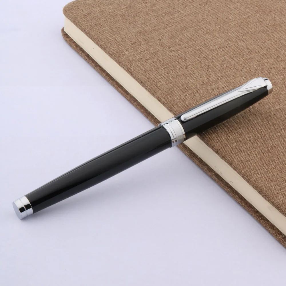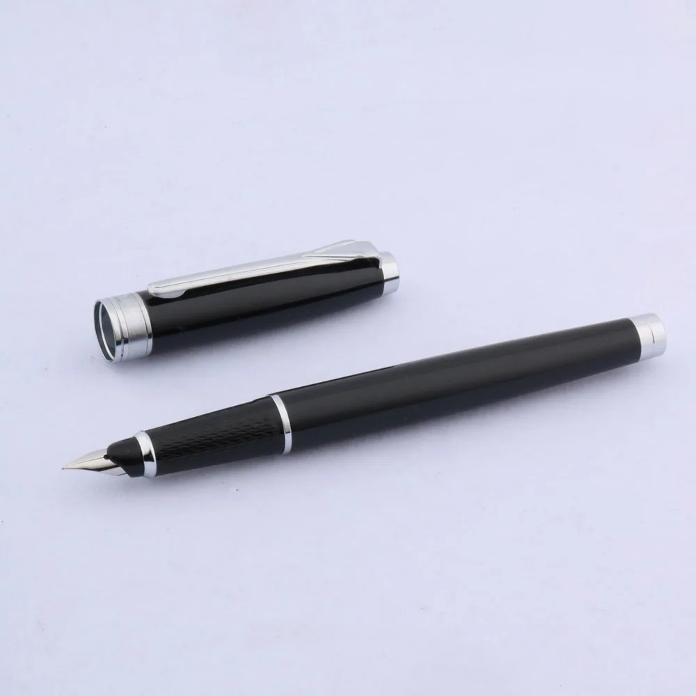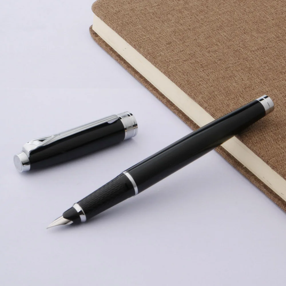 Ручка перьевая черная в ретро стиле, металлическая карандаш с серебряным куском, для учеников и студентов, офисные и школьные принадлежности
