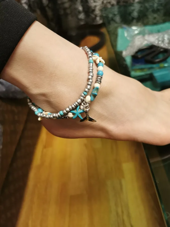 Браслет на ногу Женский, с ракушками и морскими звездами