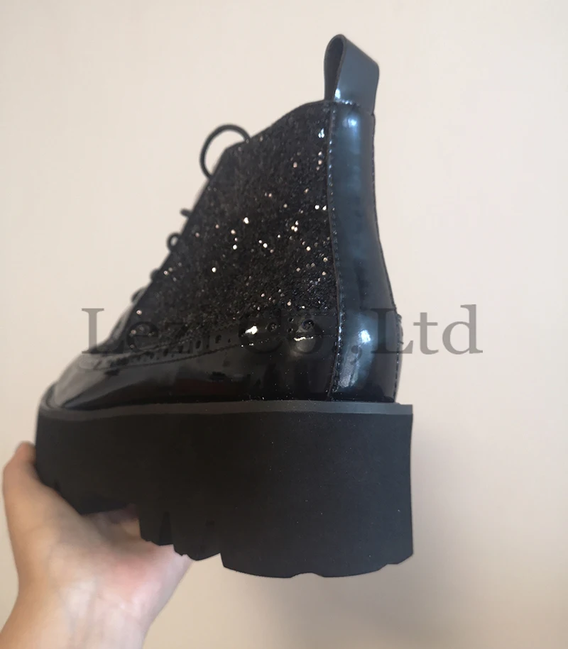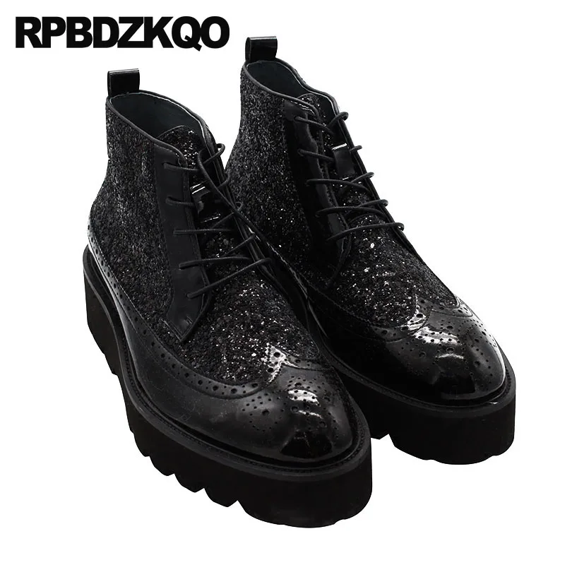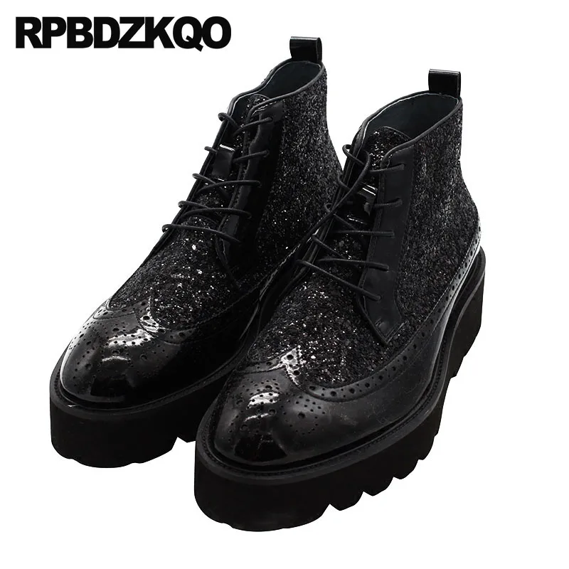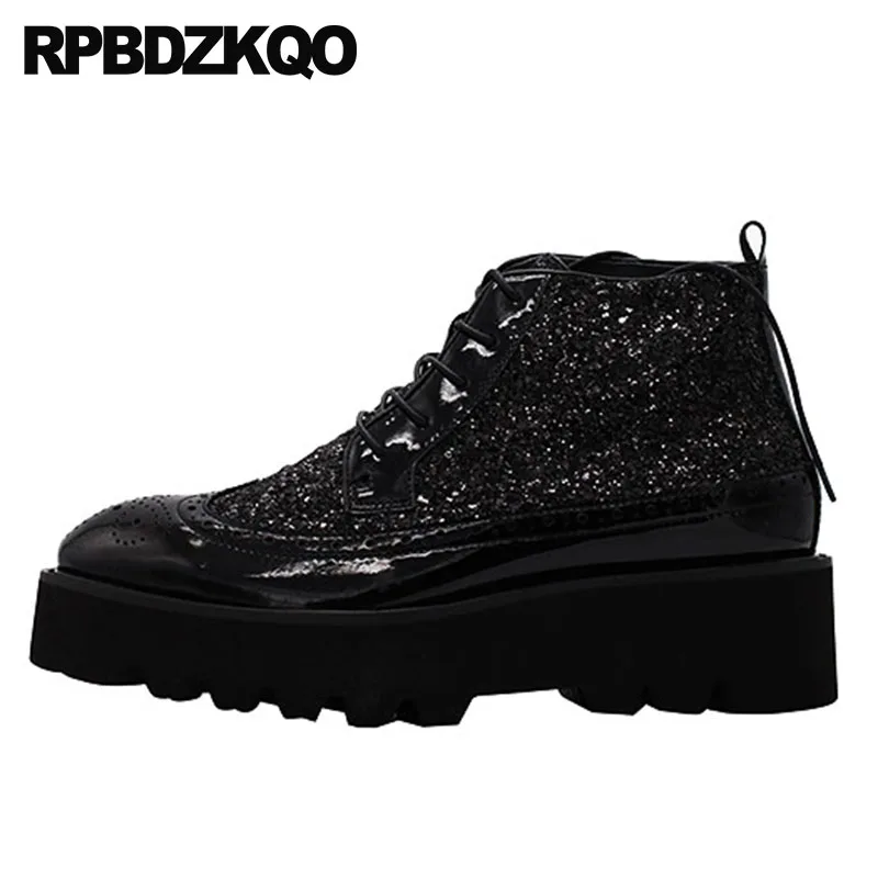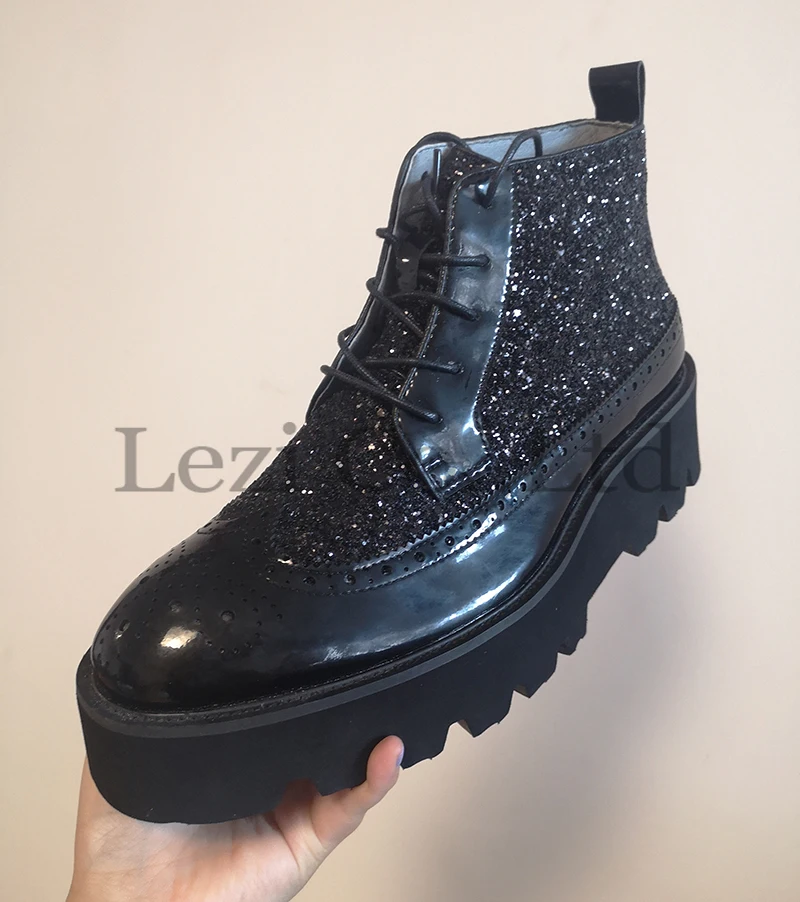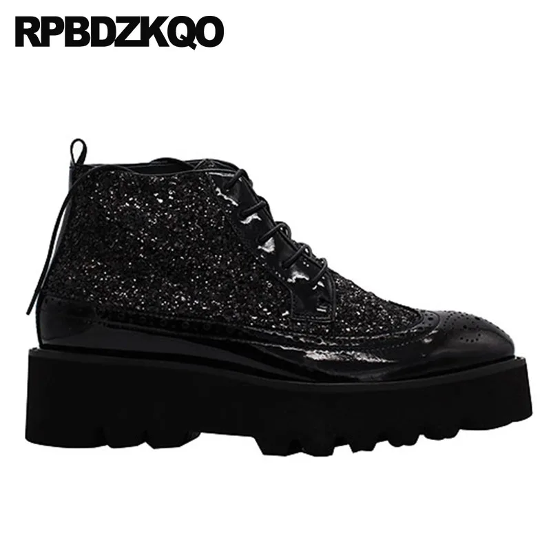 Высокие ботинки в стиле Харадзюку, черные ботинки на толстой подошве, на платформе, с закрытым верхом, Мужские броги, блестящие мужские лакированные ботинки