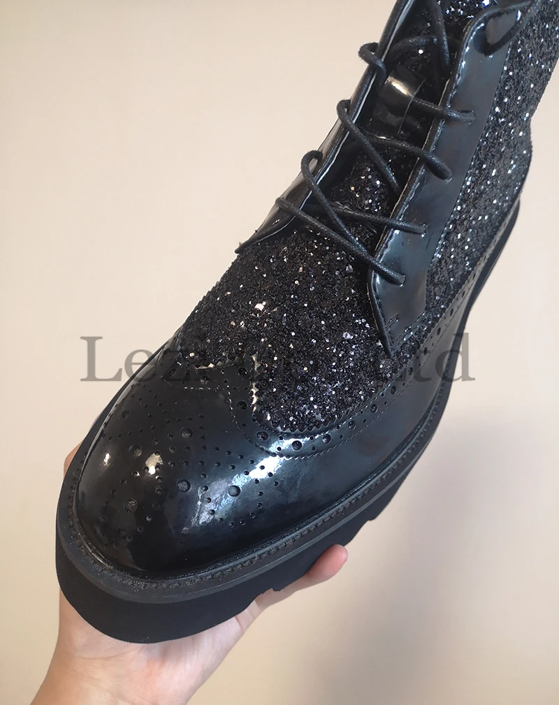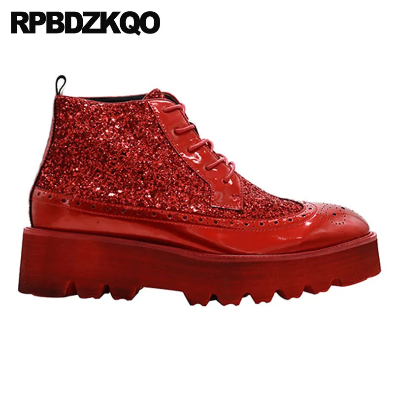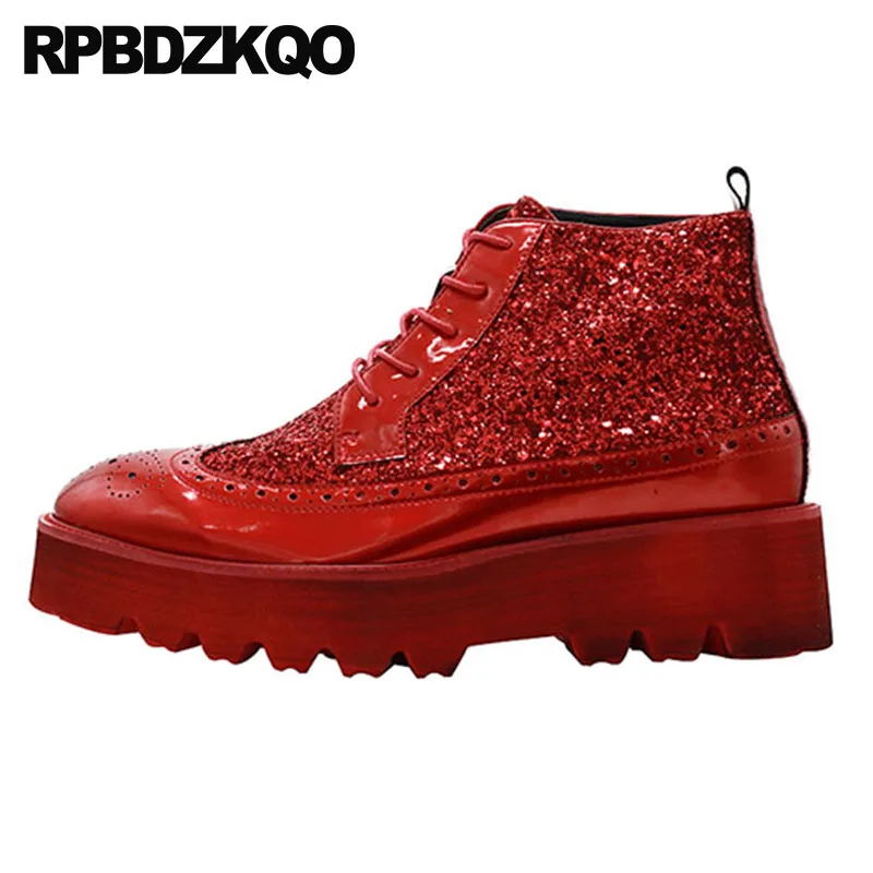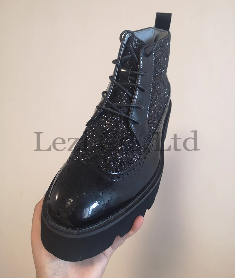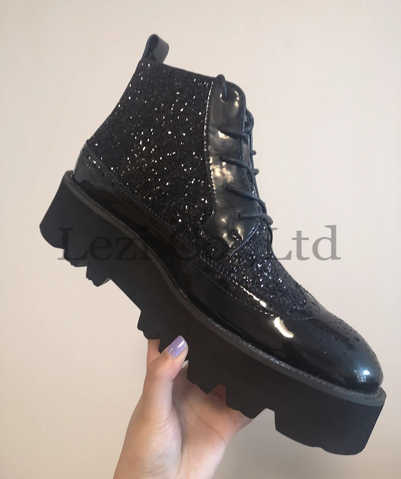 Высокие ботинки в стиле Харадзюку, черные ботинки на толстой подошве, на платформе, с закрытым верхом, Мужские броги, блестящие мужские лакированные ботинки