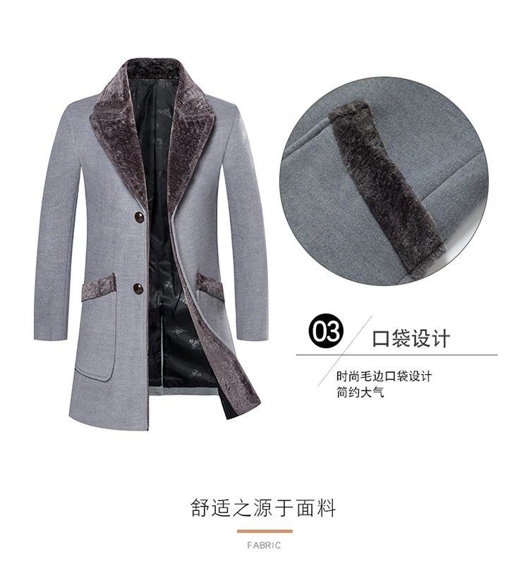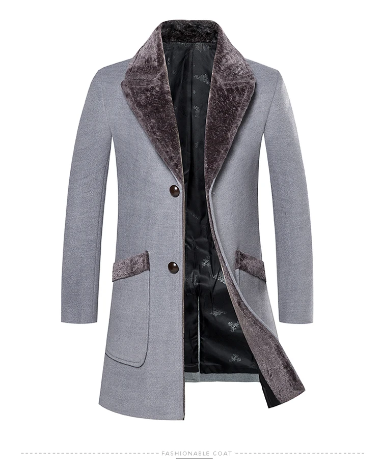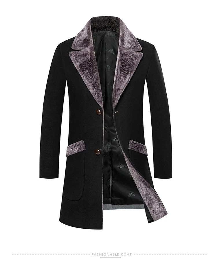 Мужское шерстяное пальто средней длины, мужское зимнее пальто с меховым воротником, мужской зимний Тренч, Manteau Homme Hiver
