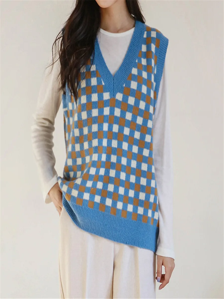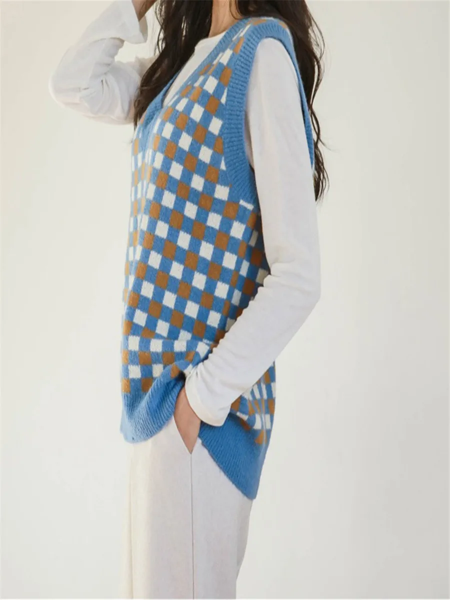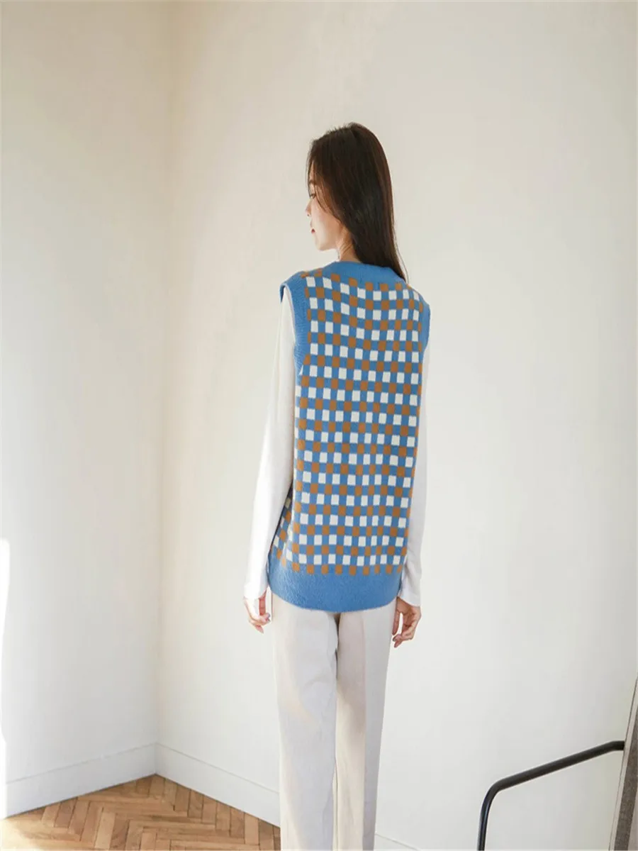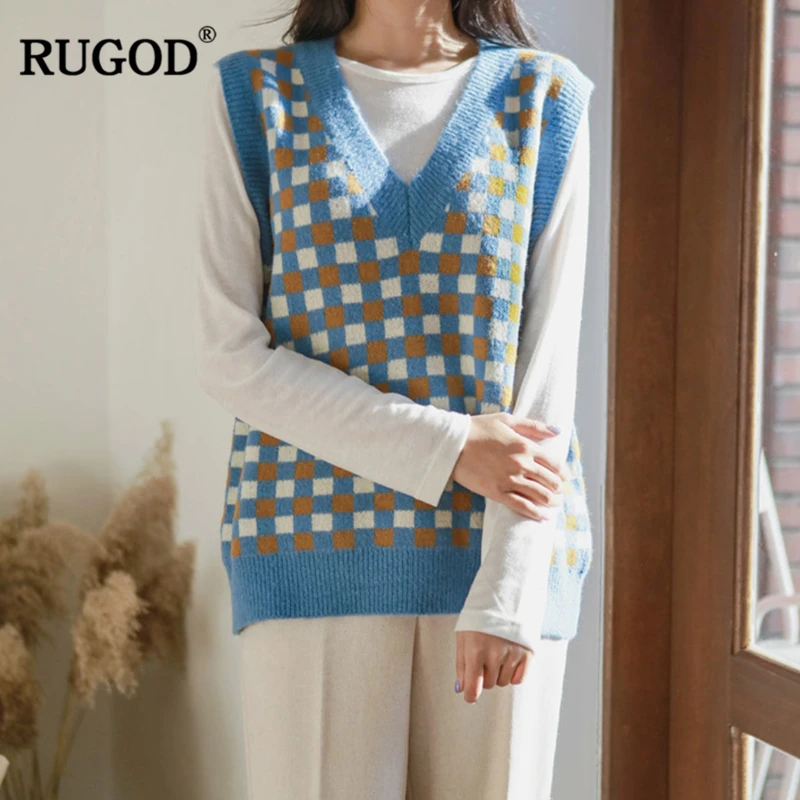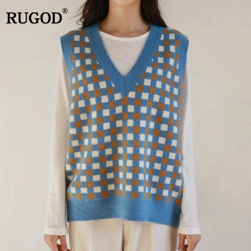 RUGOD 2020 осень-зима женский винтажный вязаный жилет с узором ромбиками теплые шерстяные жилеты без рукавов базовый шикарный вязаный жилет женский свитер