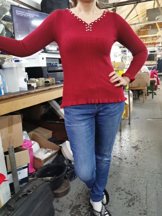 Кофточка миленькая , нежненькая. Бусинки приклеены чуть кривовато. Цена завышена сильно, в магазине бы не купила такую за 608 руб. Красная цена ей 300 руб. Не рекомендую