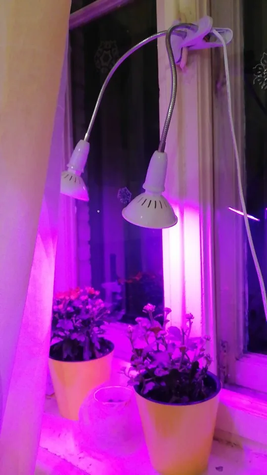 Фитолампа светодиодная полного спектра, 220 В, E27, гибкий металлический шланг с зажимом