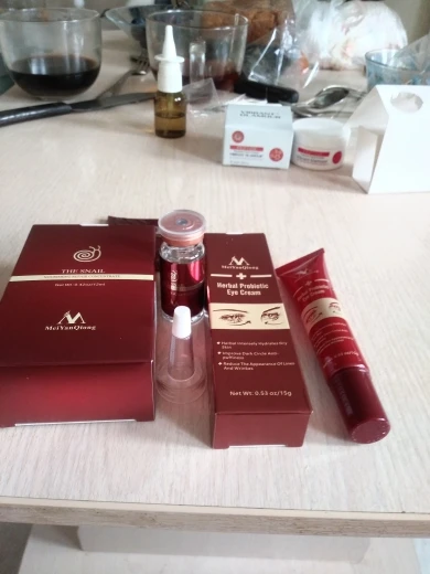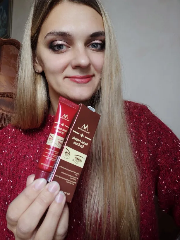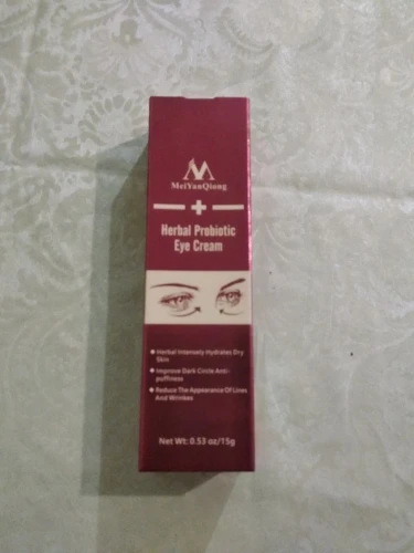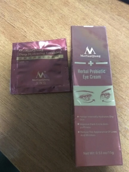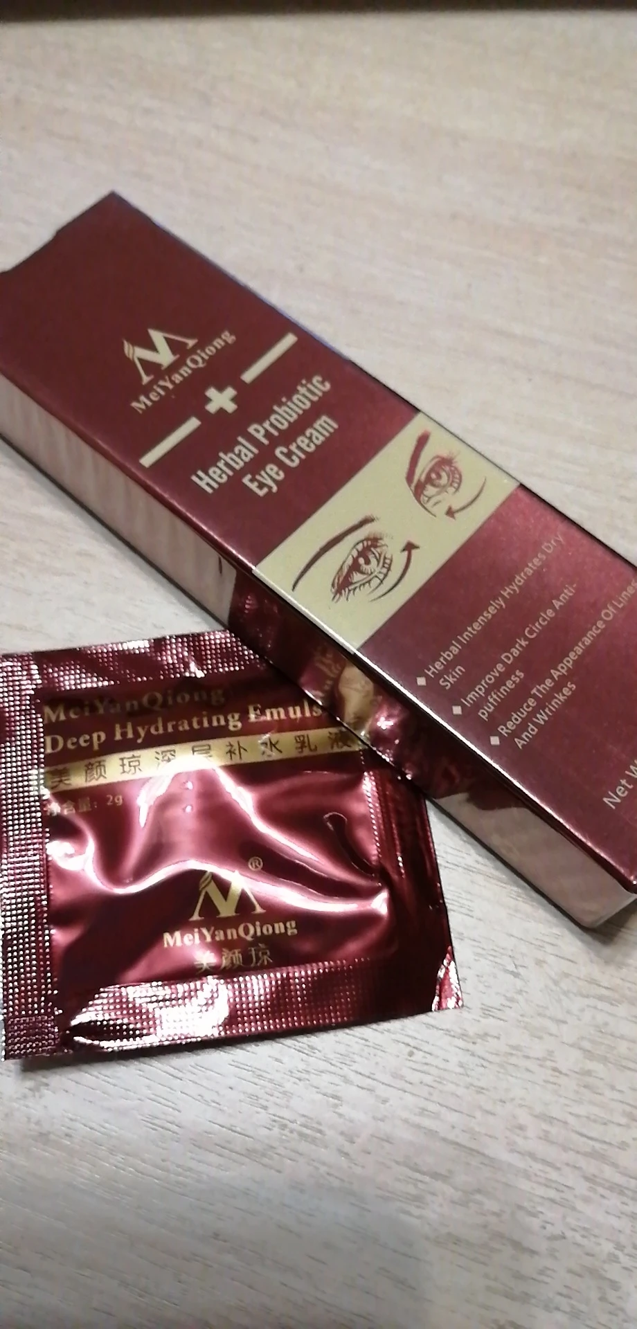 Крем для глаз с коллагеном Бренд MeiYanQiong Цена US $4.36 Вес 15 г Доставка заняла около месяца (г. Днепр, Украина). Посылка приехала целая. Крем предназначен для зоны вокруг глаз, борется с мелкими морщинами, увлажняет и питает кожу, придает легкий эффект отбеливания. Состав натуральный, сочетание богатой растительной эссенции и пробиотической технологии обладает мощной способностью регенерировать и восстанавливать поврежденные клетки кожи. Цвет крема белый,в меру плотный, быстро впитывается в кожу, без особого запаха. Рекомендовано наносить два раза в день на очищеную кожу. Расход досточно экономичный, приятная цена. Подходит для любого типа кожи. Не вызывает аллергии. Рекомендую!