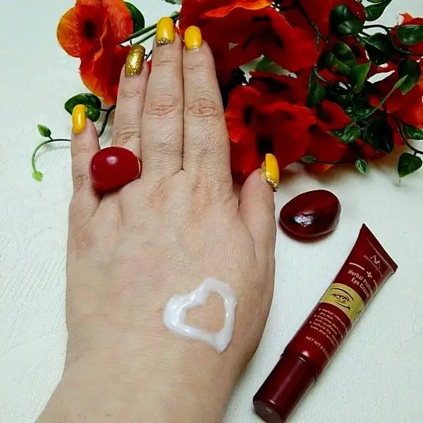 Крем хороший, флакончик небольшой. Аллергии не вызвал. Впитывается полностью, не оставляя неприятных ощущений липкости, жирности и пр.подходит для кожи вокруг глаз с темными кругами, отечностью, сухими, морщинками и другими проблемами.
