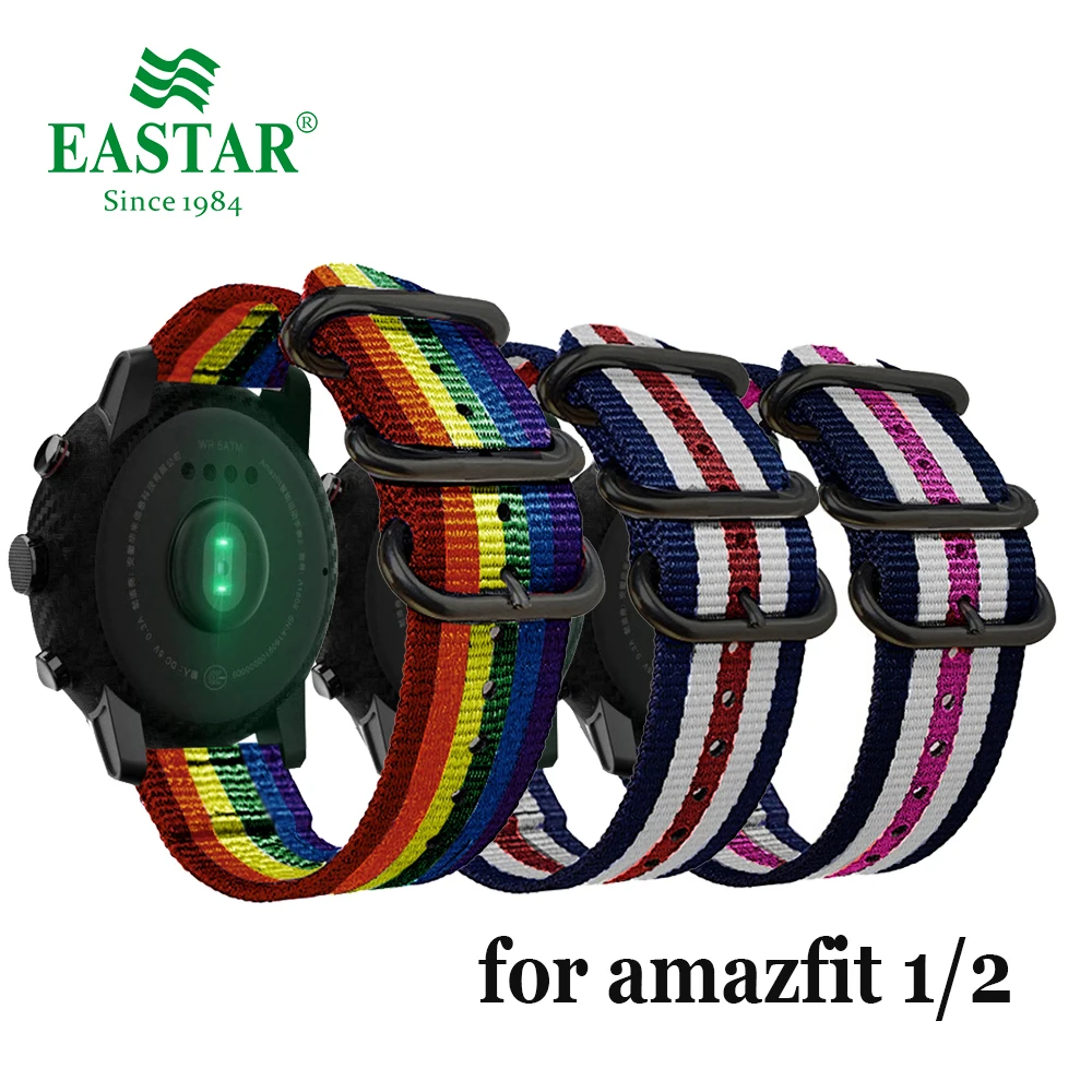Eastar нейлоновый тканый ремешок для часов, цветной ремешок с пряжкой для Amazfit Bip для Xiaomi Huami Amazfit Pace браслет 22 мм