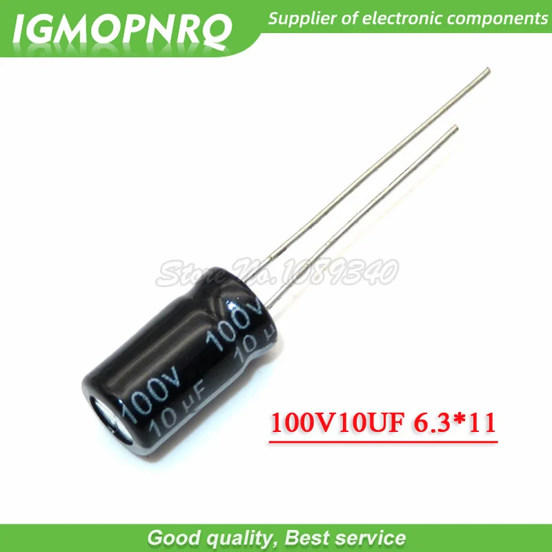 Алюминиевый электролитический конденсатор 100V10UF 6x11 мм, 6,3*11, 10 мкФ, 100 В, 50 шт.
