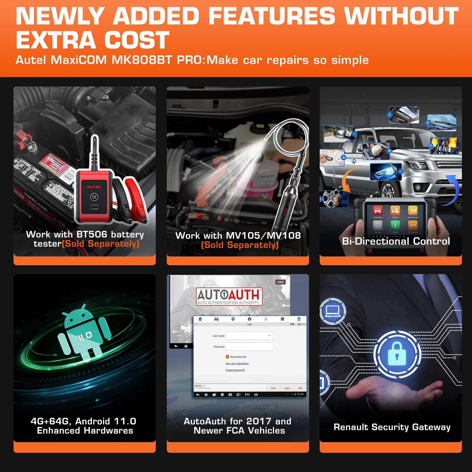 Autel MaxiCOM MK808BT Pro OBD2 Scanner Car Diagnostic Tools Code Reader With Active Test, All System Diagnosis, 28+Services