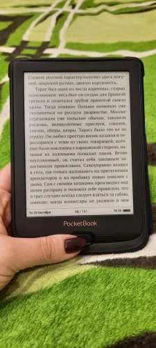 сам футляр выполнен качественно и добротно, но он очень жесткий и не полностью захватывает края книги, на фото видно. В принципе не могу рекомендовать к покупке, надеюсь что есть более качественные и мягкие более мягкие обложки для PocketBook 627