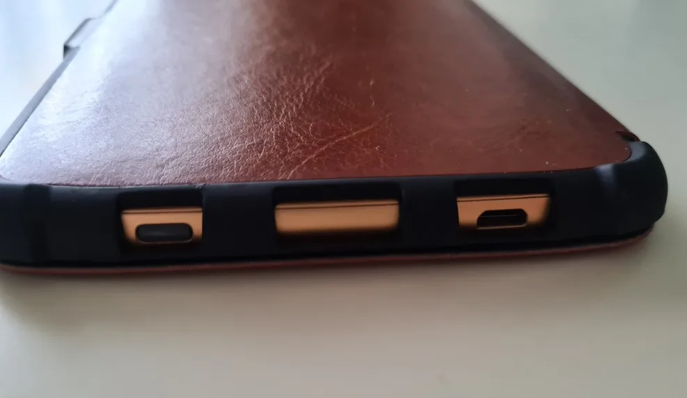 Отличный чехол. Подошел точно. Книжка при открытии просыпается. Углы укреплены. Чуть неудобно в плане зарядки. Кабель входит туговато, но у меня получается заряжать в чехле.