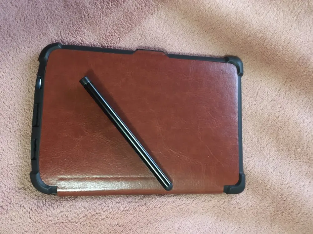 Обложка красивая, аккуратная. На покетбук подошла по размеру, только кнопка включения сильно глубоко утоплена, Дополнительно вложили плёнку на экран и стилус