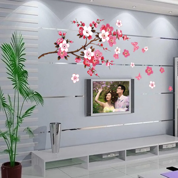 Красивые настенные наклейки с цветами вишни, домашний декор сделай сам, обои с вишневым деревом для телевизора, дивана, гостиной, спальни, съемные