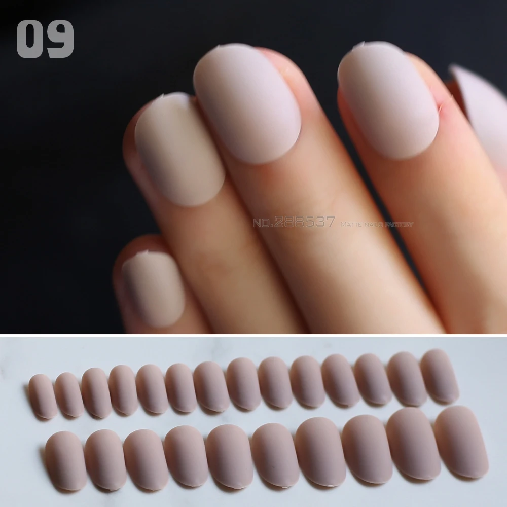 Матовые овальные накладные ногти телесного цвета, 24 шт., полный набор, красные накладные ногти, темно-синие, средней длины, Круглые, черные, простые, однотонные