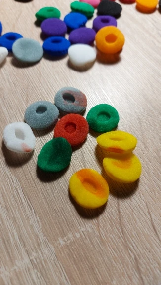 заказала 2 набора, по количеству всё соответствует. На наушники подошли. Единственный жирный минус в том, что красные амбушюры окрасили почти половину остальных цветов. Выглядит некрасиво и неаккуратно...