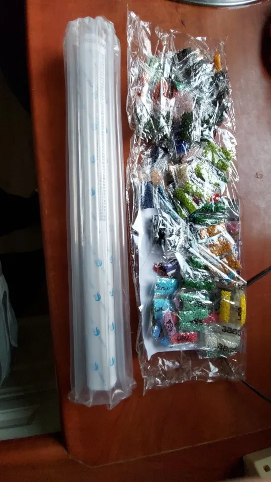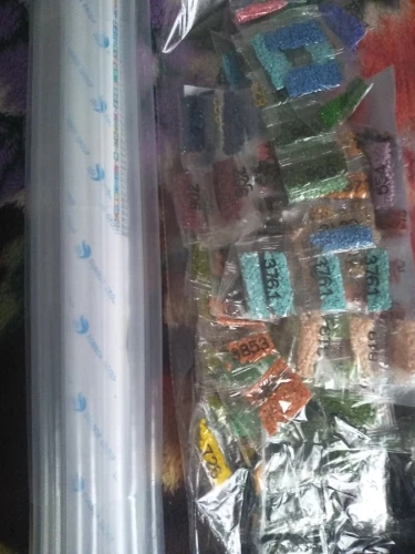 Доставка сверхбыстрая: еще ни одна посылка из Китая в Сибирь не приходила за 24дня с момента заказа на сайте! Доставлено всё в целости и сохранности. Картины было три, были сложены вместе и упакованы ещё в "дутый"полиэтилен. Полотна картин не мятые! Отклеила уголок, чтобы посмотреть качество клеевого слоя и различимость символов. Всё прекрасно: клеевой слой хорошо держит, символы пропечатаны крупно и отчётливо! Все стразы в наличии (одного цвета даже на один пакетик больше), аж бальзам на сердце. Если бы умела оставлять отсроченные отзывы, то выложила бы ещё и собранную картину, но не умею добавлять отзыв потом, после закрытия заказа. Очень надеюсь, что цветовая передача будет близка к фотографии на сайте, потому что у многих продавцов перестала заказывать именно по той причине, что картины получаются намного темнее заявленной по фотоизображению на странице сайта.