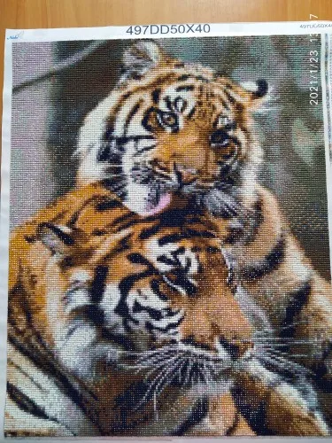 Картина класс! Алмазы все на месте, по списку соответствуют. Одного вида даже на один пакет больше. Прислали быстро, в течении двух недель. Упаковка не помятая, что хорошо отразилось на картине, пришла без перегибов