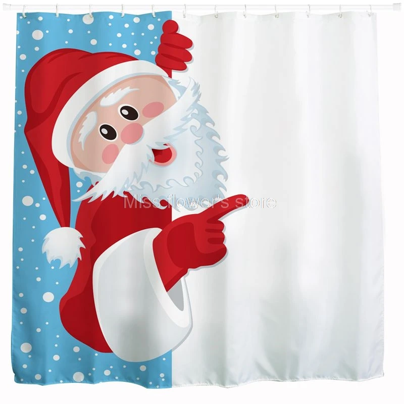 Занавеска для душа с милым дизайном Санта-Клауса, водонепроницаемая занавеска для ванной из полиэстера с защитой от плесени и 12 крючками