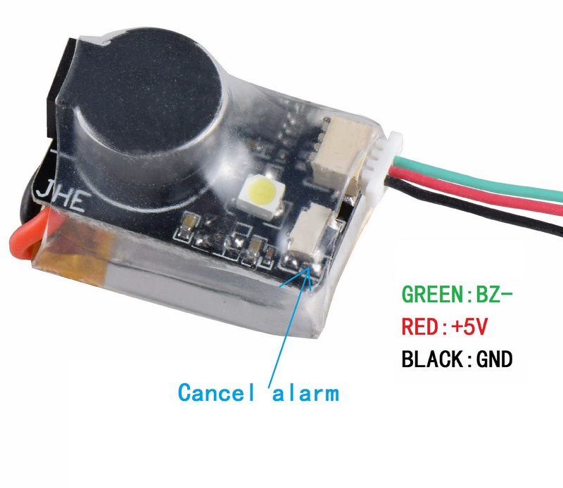 Искатель JHE42B совместим со всеми режимами управления полетом BF и CF. Просто подключите к интерфейсу зуммера контроллера полета, и он будет работать. Когда проводка управления светильник f верна, мульти-роторный самолет включен, И блок питания с управлением на светильник f будет автоматически заряжать искатель JHE42B (красный светодиодный светильник будет указывать, что зарядка находится в процессе).