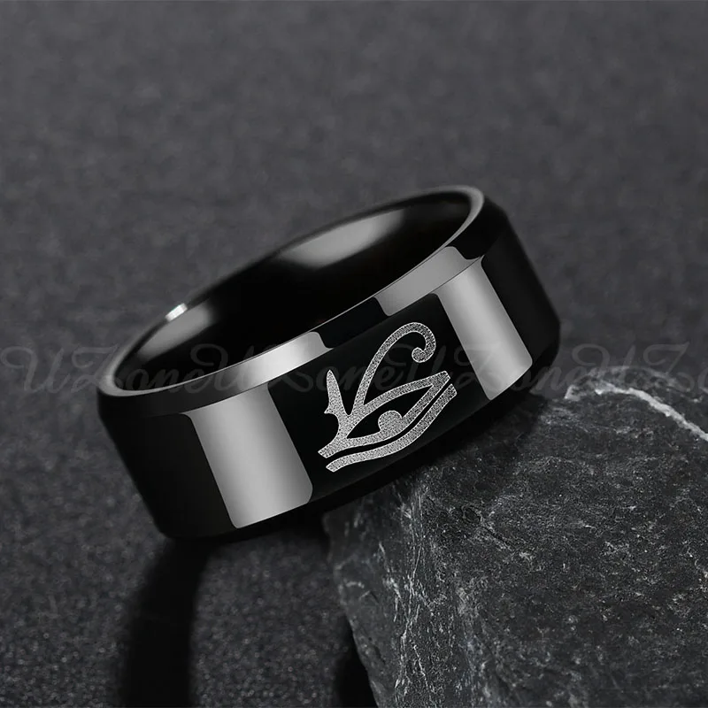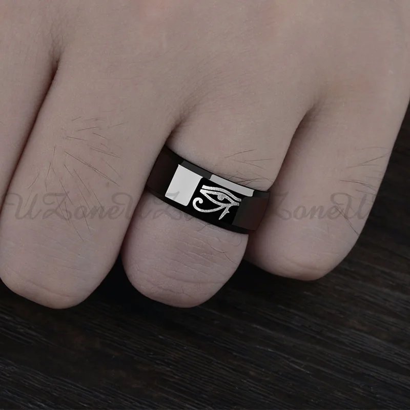 Кольцо из нержавеющей стали UZone с египетским глазом Horus черный Панк модные аксессуары для крутых мужских подарков