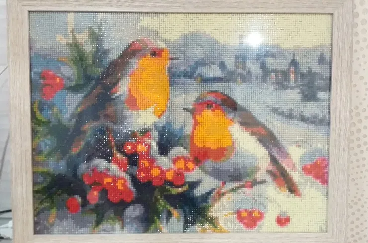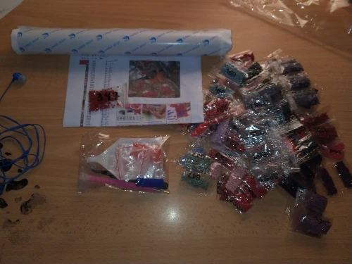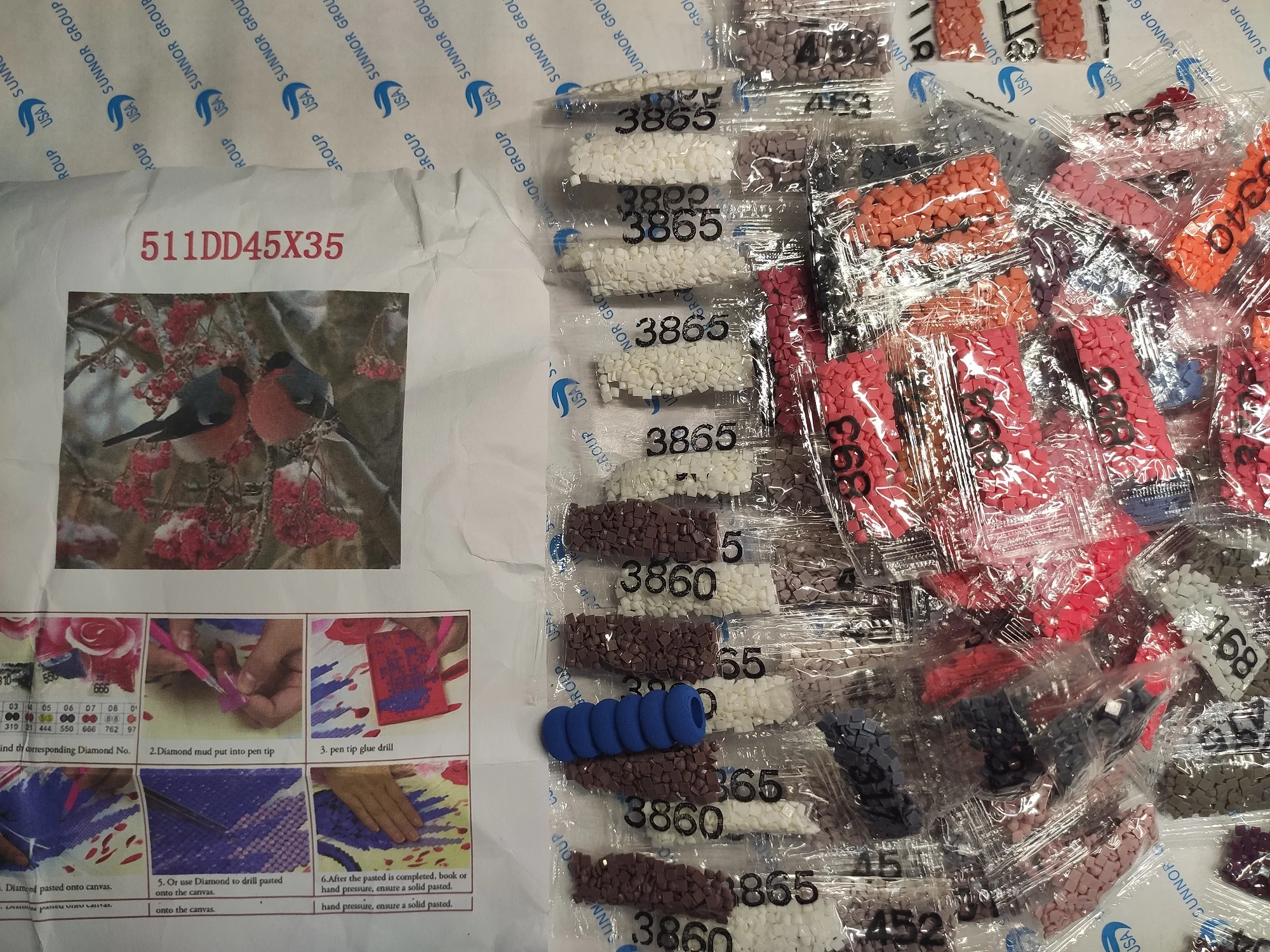 Заказ пришёл быстро за 2 недели в г.Ярославль. Посылка отслеживалась. Это моя первая алмазная картина(сравнивать не с чем). Упаковано на ура,ничего не помялось, по количеству тоже всё совпадает с тем что написано на бумаге(надеюсь этого хватит). Качество хорошее, в комплекте есть всё что нужно. Рисунок чёткий, символы хорошо видны. Пока собрала половину, некоторые алмазики с браком(в каждом пакетике 1-3шт точно, убираю их в отдельный пакетик на всякий случай). Думаю буду брать ещё и другие картины, т.к.всё нравится,собрана половина, а смотрится уже красиво)