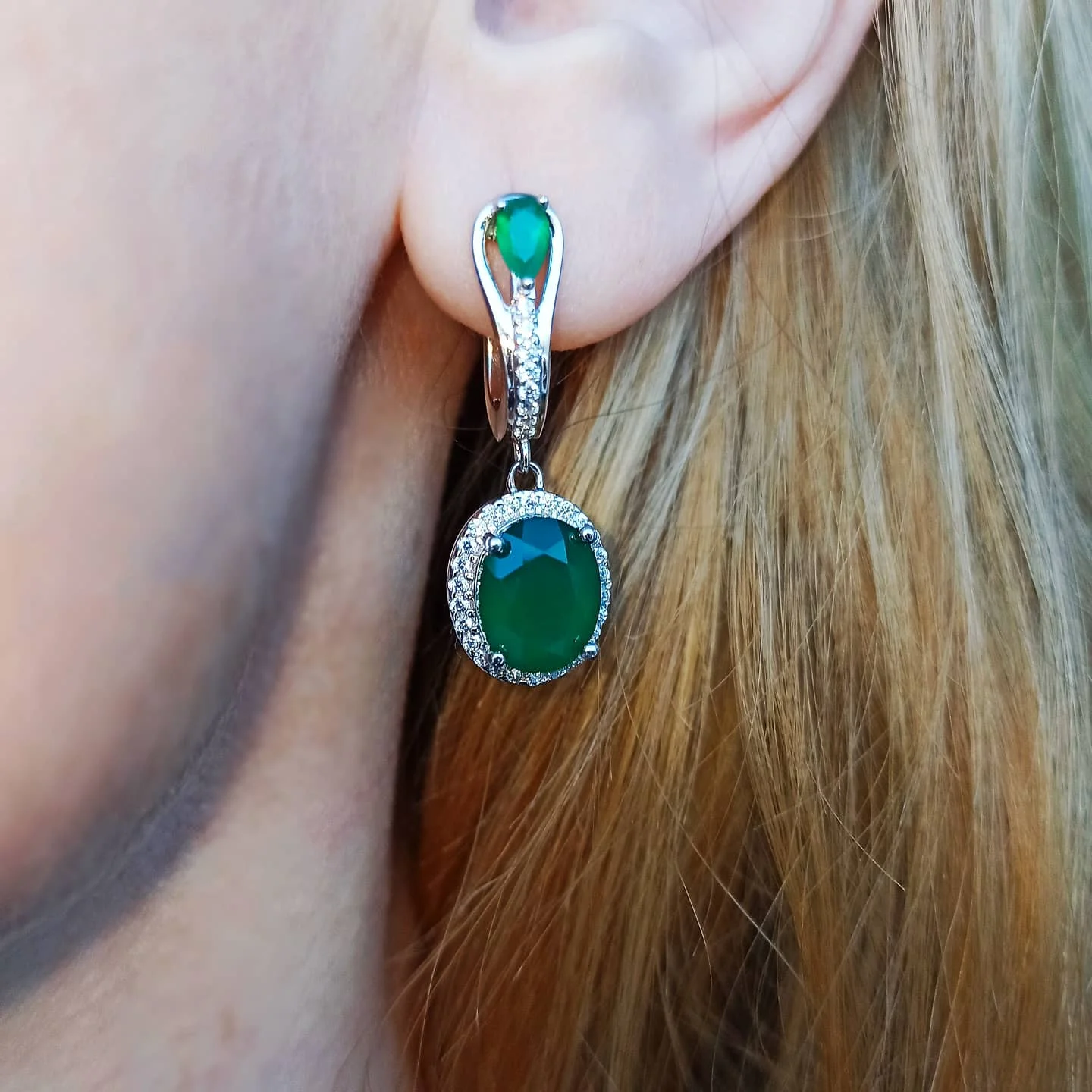 Великолепные серьги с насыщенным зелёным агатом. Серёжки на полную мочку. Упакованы в подарочную коробочку. Спасибо. Рекомендую.