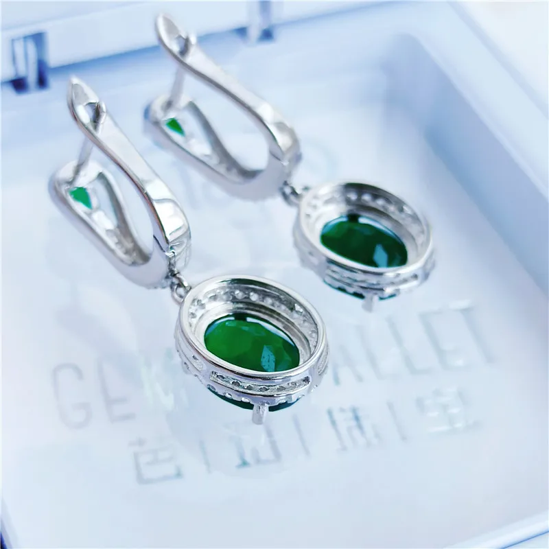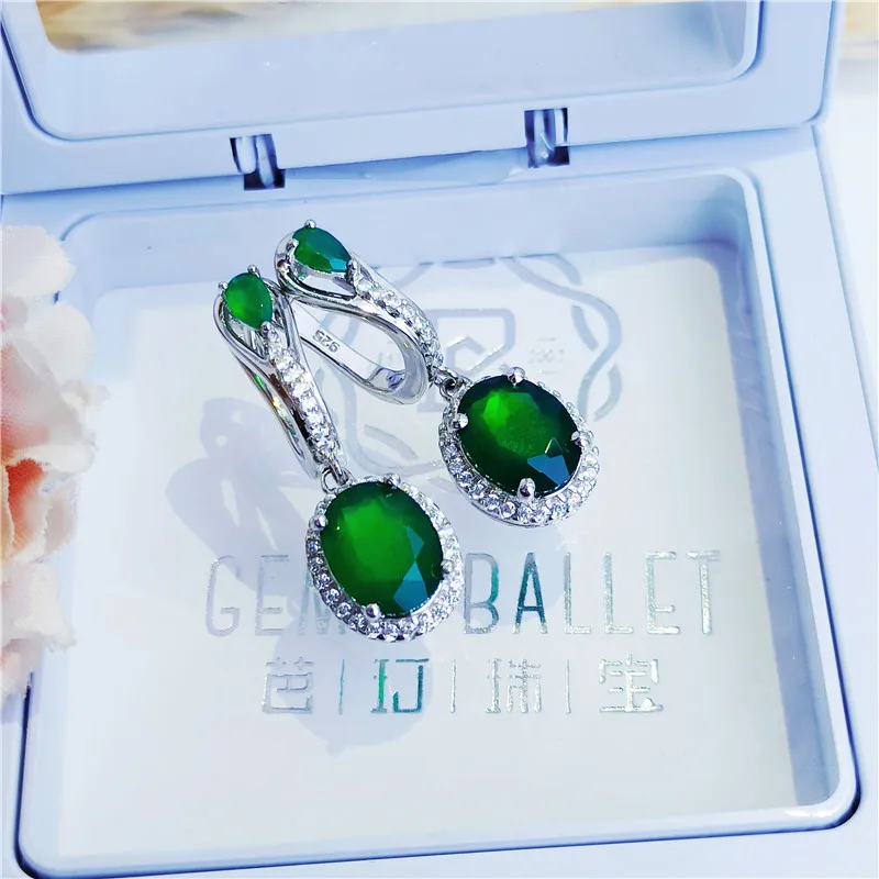 Женские серьги с натуральным зеленым агатом, 925 пробы, Серебряные Серьги с драгоценными камнями карат