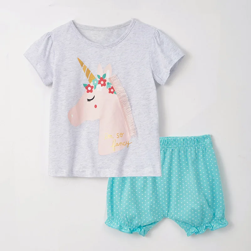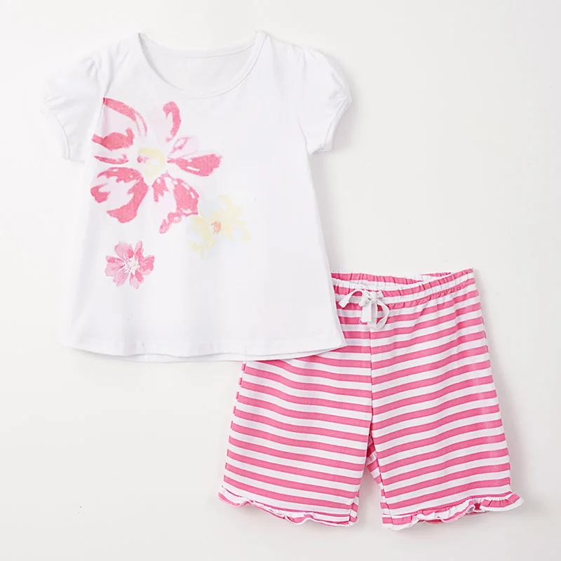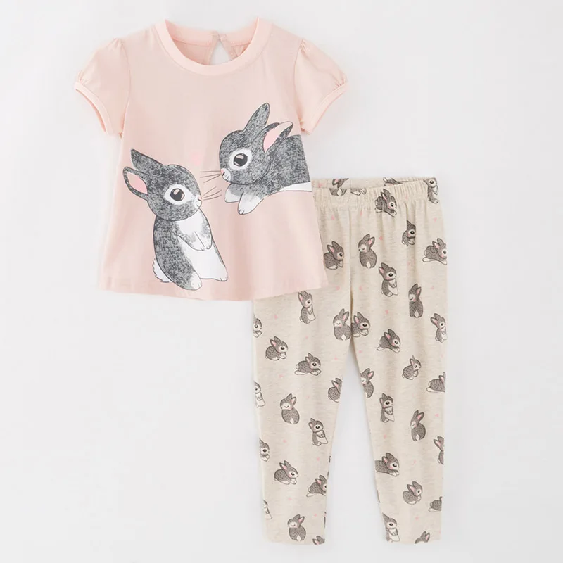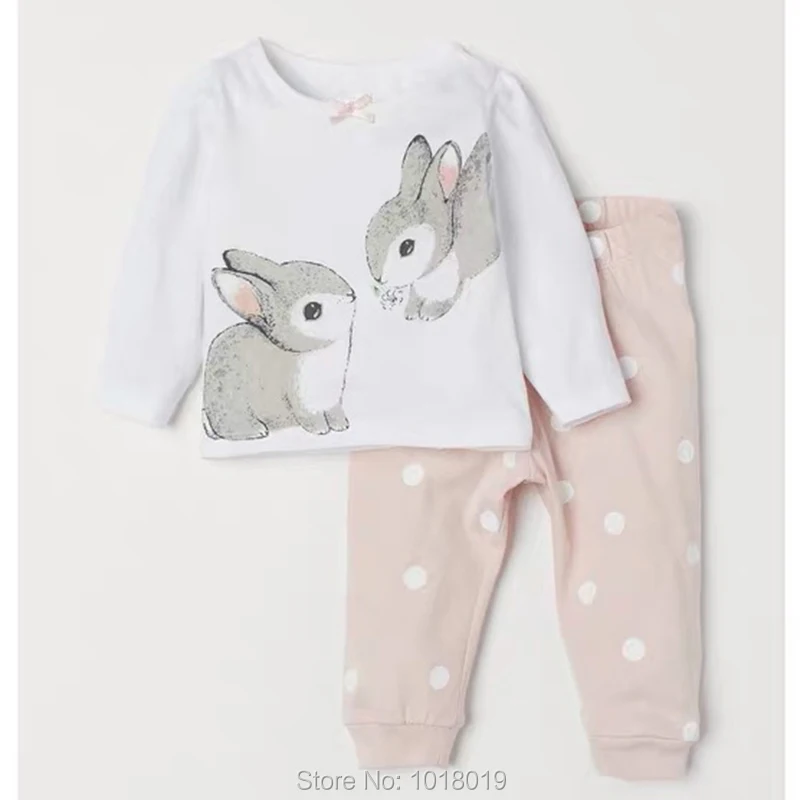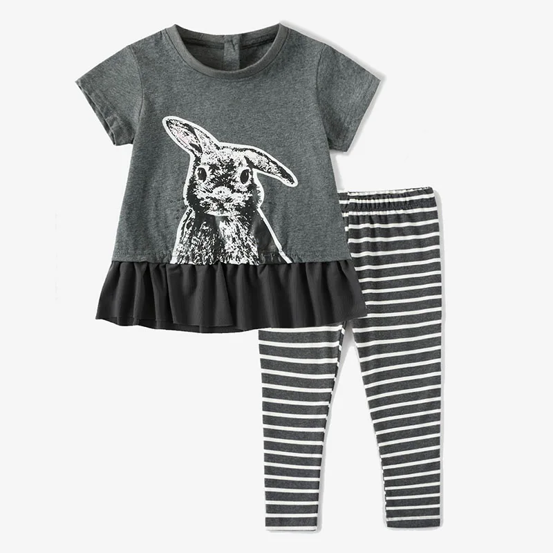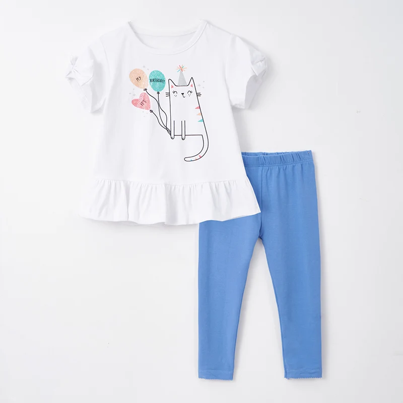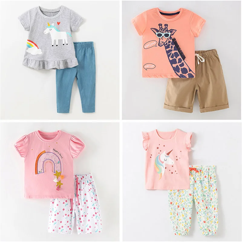 2 шт., детский хлопковый комплект одежды для девочек, футболка с коротким рукавом и штаны