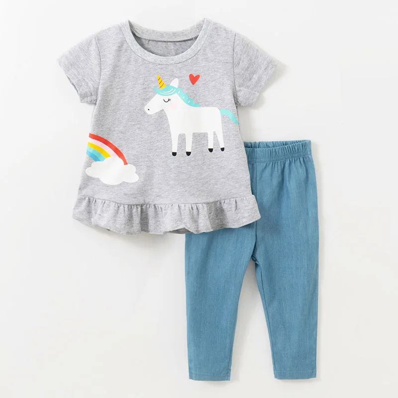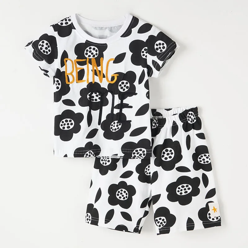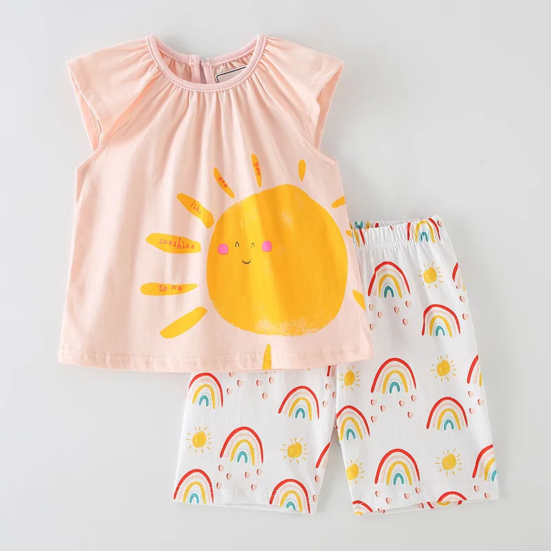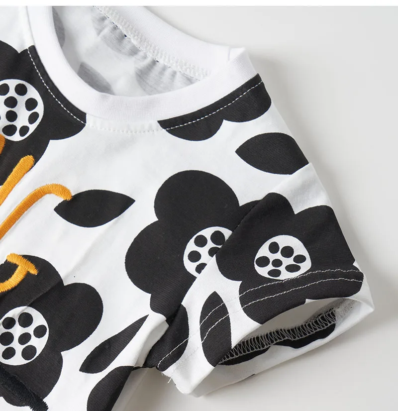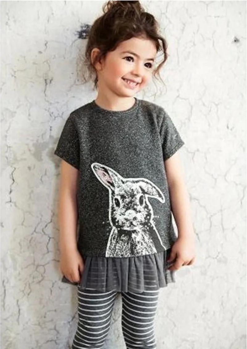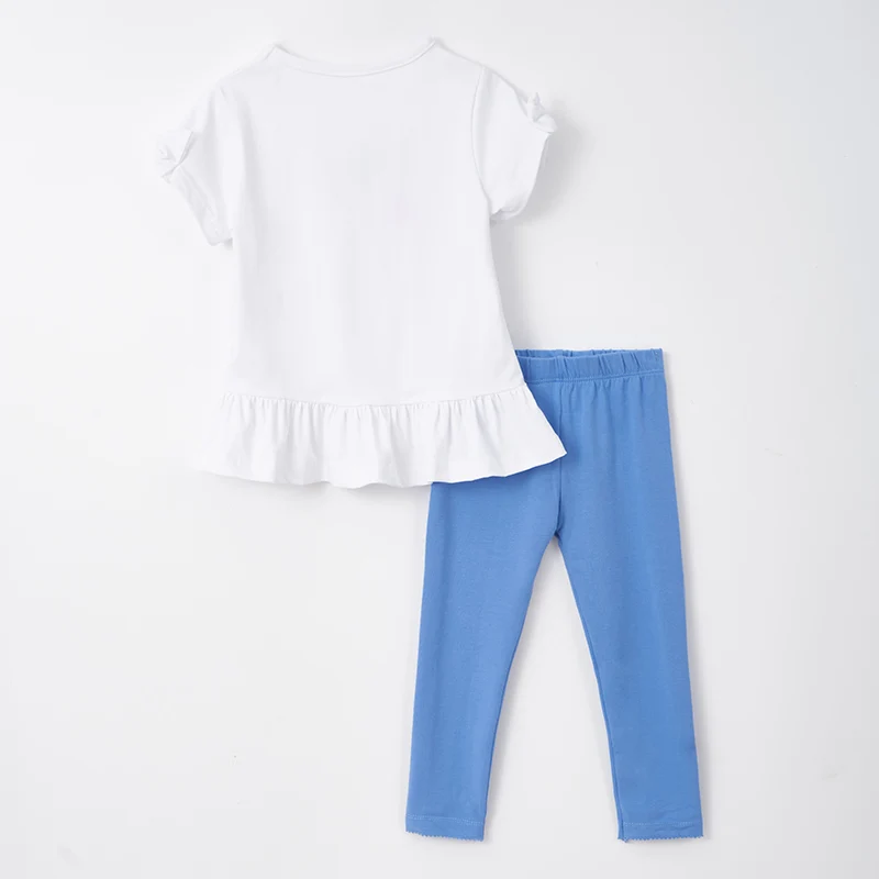 2 шт., детский хлопковый комплект одежды для девочек, футболка с коротким рукавом и штаны