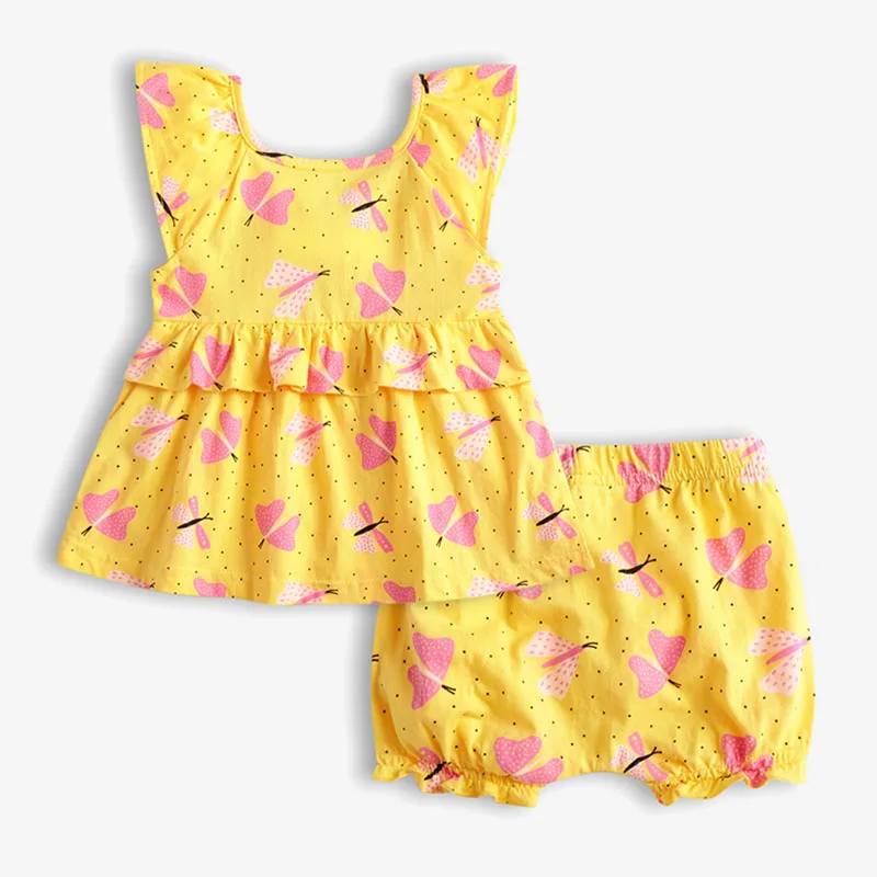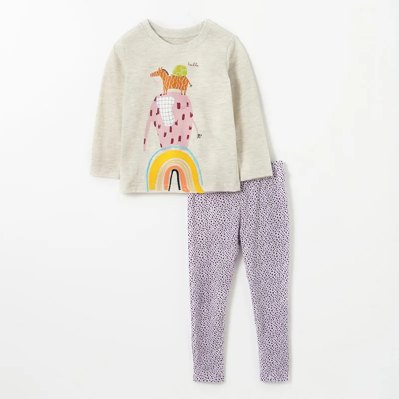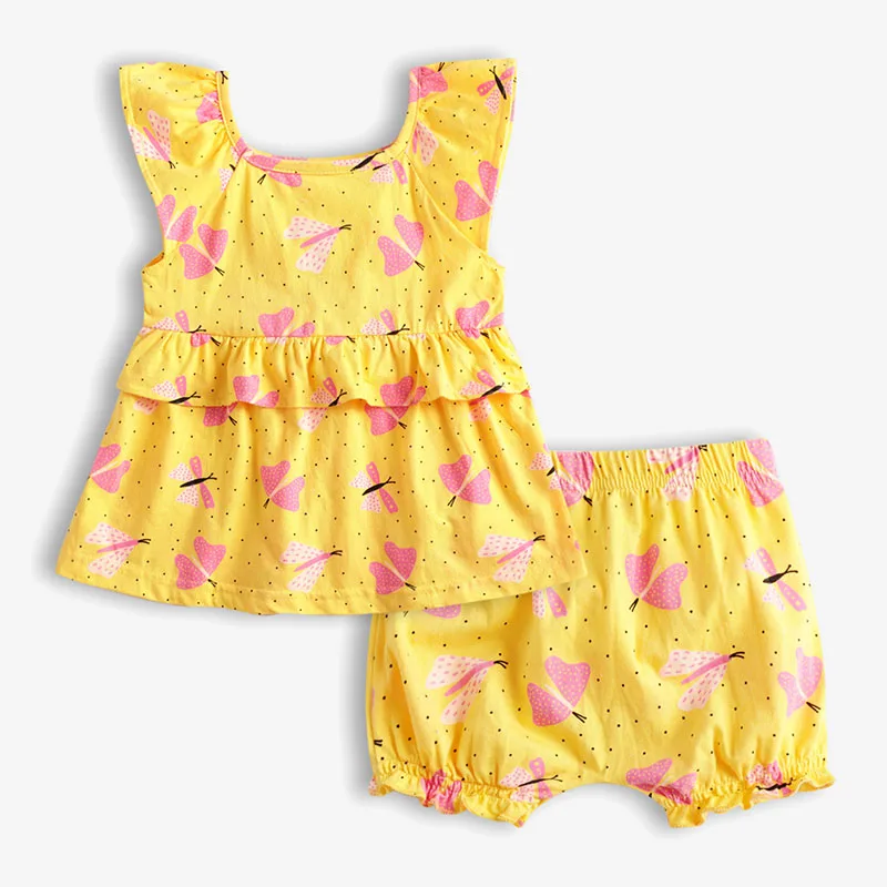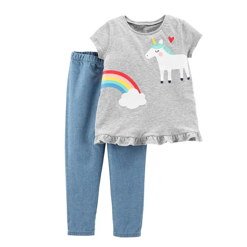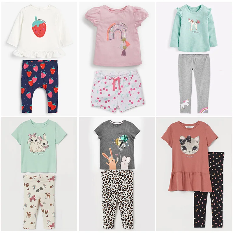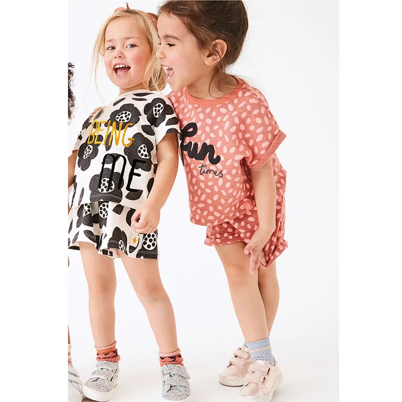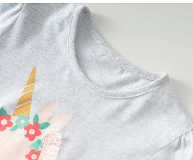 2 шт., детский хлопковый комплект одежды для девочек, футболка с коротким рукавом и штаны